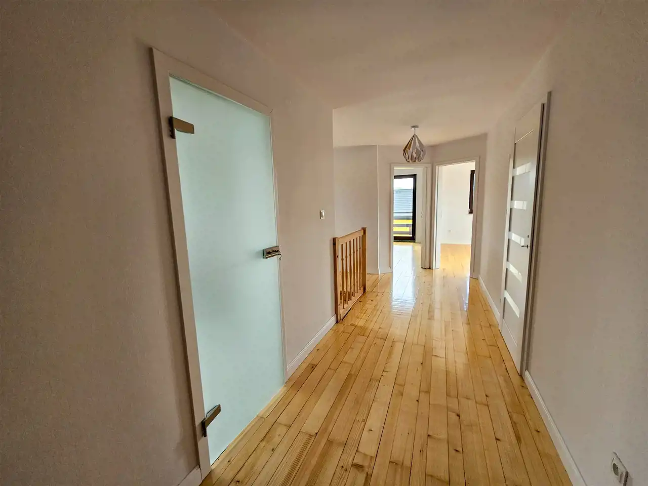 Piętro: cztery pokoje z każdy z balkonem, łazienka, przedpokój