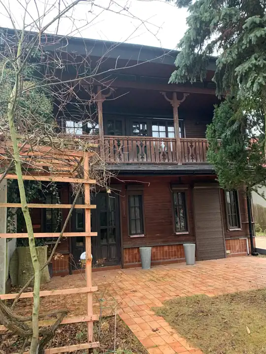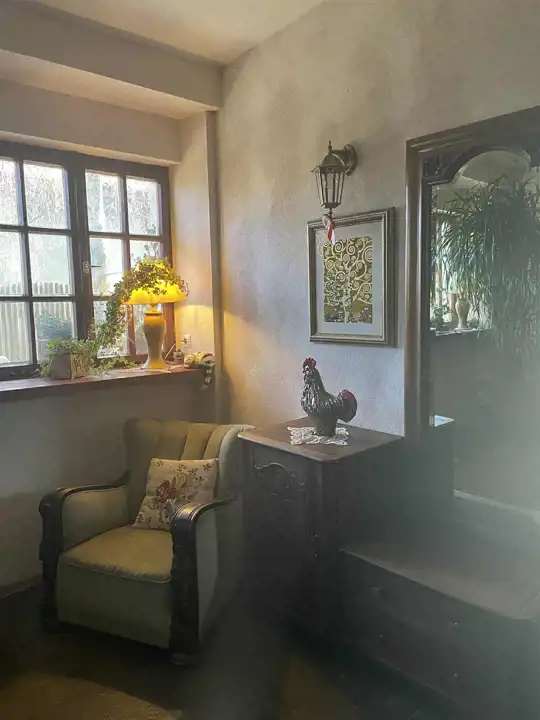 Na posesji jest dom, którego początek historii datuje się na okres 20-lecia międzywojennego i w jego wnętrzach właściciele kultywują wartości przeszłości. W latach 90-tych ubiegłego wieku budynek przeszedł gruntowny remont i rozbudowę. Wszystko jednak zostało dopasowane do istniejącej części domu: starannie dobrano okna (drewniane skrzynkowe), elewację budynku. Dach (nowe łaty i kontrłaty) pokryto blachą Gerard z ognioodpornej stali, z warstwą antykorozyjną i posypką z kamienia wulkanicznego.
