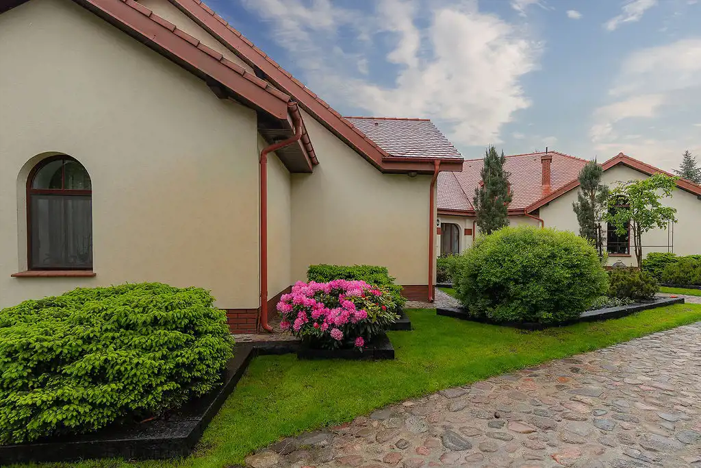 Dom posiada cztery tarasy o łącznej powierzchni 138,32 m², co zapewnia wiele możliwości do spędzania czasu na świeżym powietrzu. Otaczający posesję ogród to jeden z największych atutów tej nieruchomości. Działka o powierzchni 1928 m² została przepięknie zagospodarowana – znajdują się tu liczne nasadzenia: drzewa ozdobne, krzewy, rośliny wieloletnie i sezonowe, tworzące przyjemny mikroklimat oraz niepowtarzalny klimat ogrodu przez cały rok. Zieleń została zaplanowana z myślą o estetyce, ale też o funkcji – zapewnia prywatność, cień i harmonię z otoczeniem.