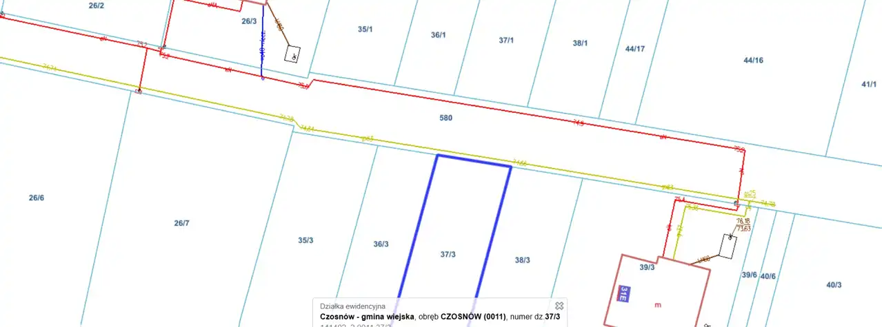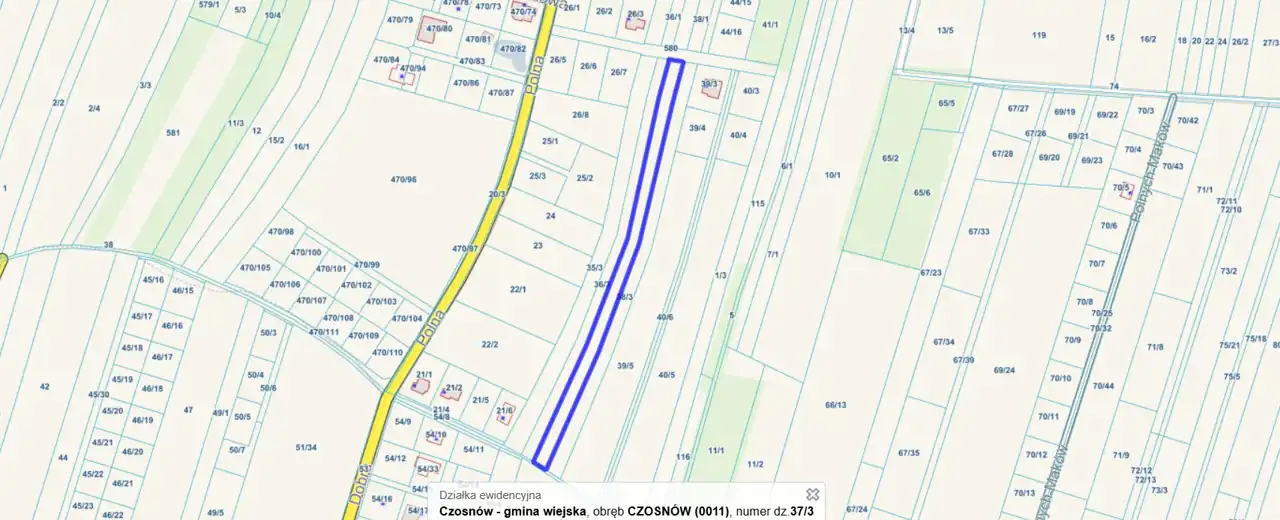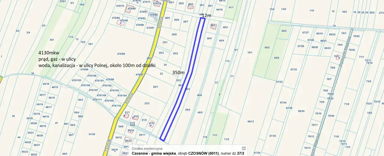- Media Woda: brak; Kanalizacja: brak; Prąd: w ulicy; Gaz: w ulicy