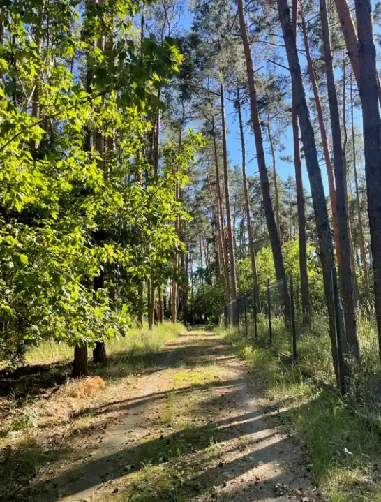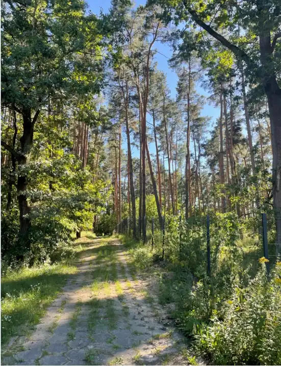 Okolica skąpana w zieleni, z bujną roślinnością naturalnie przechodzącą w całe bogactwo flory i fauny Kampinoskiego Parku.