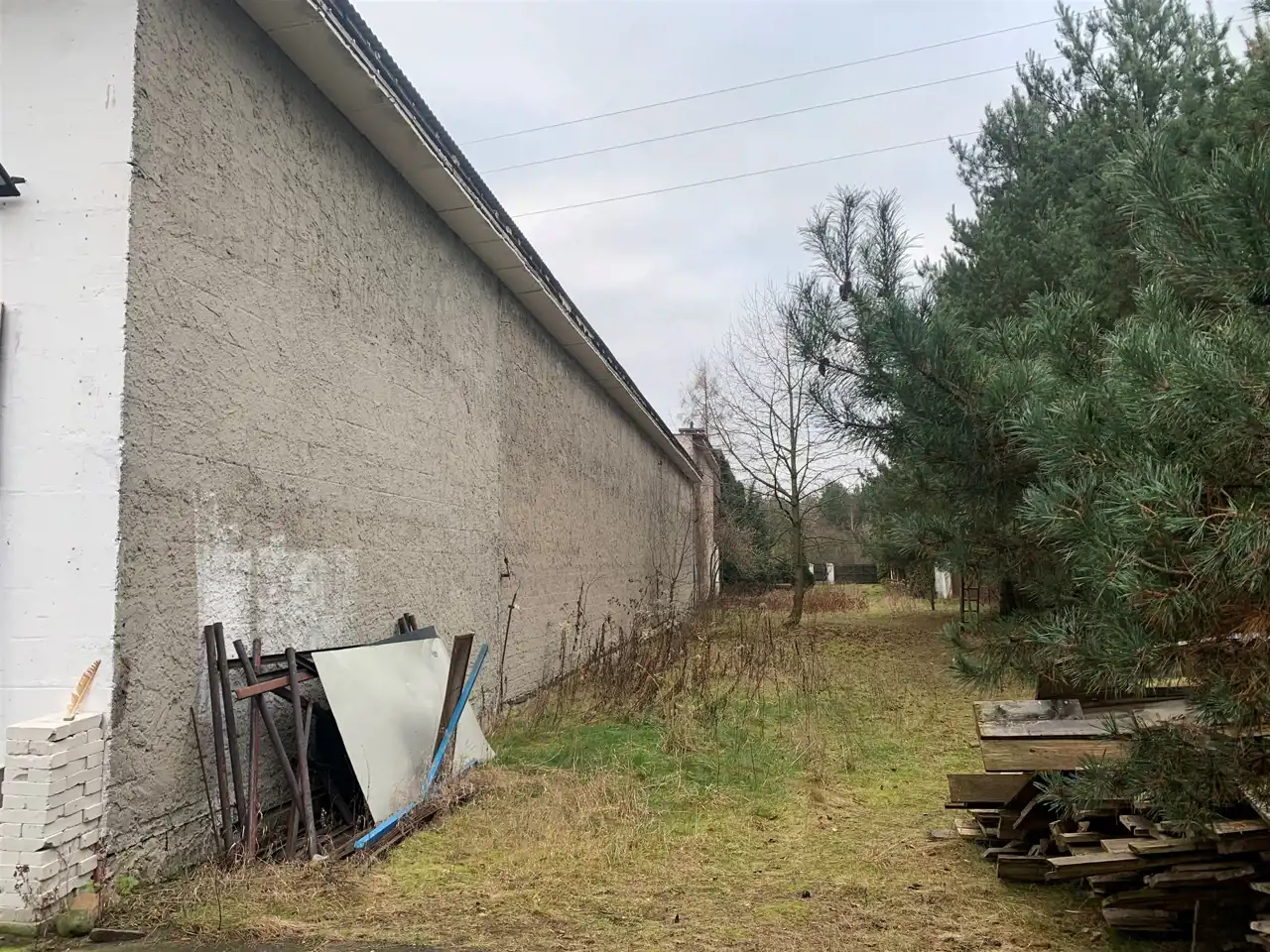 Za halą jest jeszcze ponad 6000m2 powierzchni do wykorzystania - w planie miejscowym jest to teren pod zabudowę mieszkaniową jednorodzinną ekstensywną, z minimalną powierzchnią nowo wydzielanej działki 1500m2.