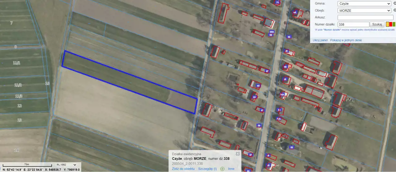 - Działka nr 338 o powierzchni 0,4563ha, użytki: RIIIa - 0,3365 ha, PSIII - 0,1135 ha