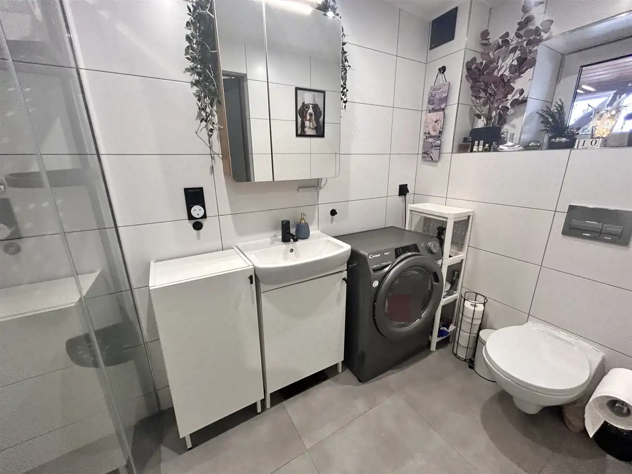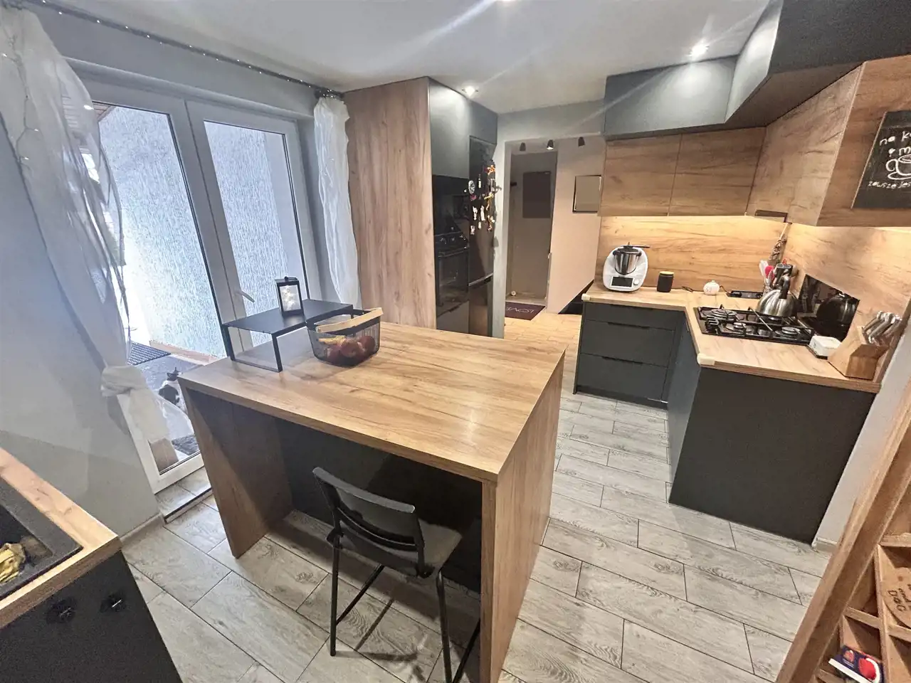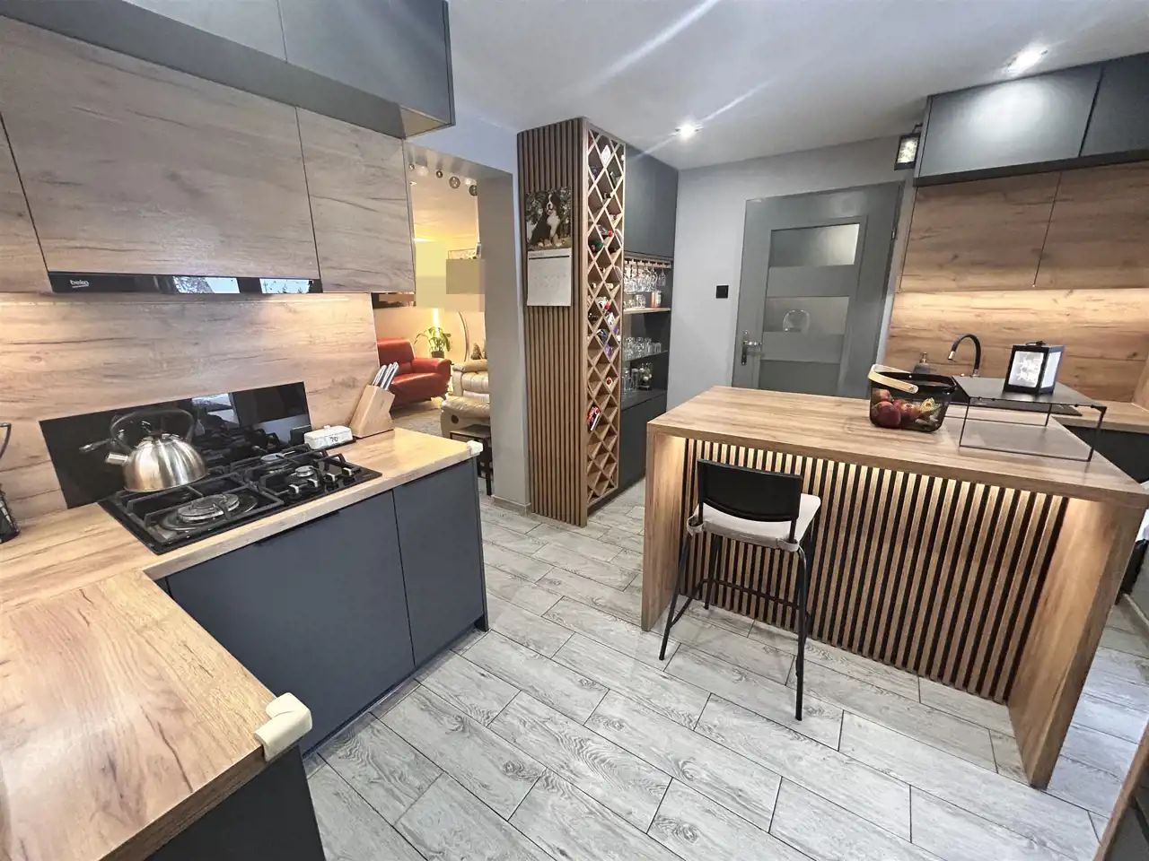 Salon jest duży i przestronny, na podłodze znajdują się panele, na ścianach gładzie. Dodatkowo w salonie znajduje się kominek, dzięki czemu jest bardzo przytulnie. W sypialni na podłodze położone zostały panele, na ścianach gładzie. Na przedpokoju położone na podłodze panele, na ścianach gładź pokryta powłoką malarską. Łazienka wyposażona w kabinę prysznicową oraz miskę WC ze stelażem podtynkowym, na ścianach i podłodze płytki gresowe. W kuchni na podłodze znajdują się płytki gresowe, na ścianach gładź pokryta powłoką malarską oraz panele drewniane w pasie roboczym. Kuchnia wyposażona w nowoczesną zabudowę kuchenną wraz ze sprzętem AGD (lodówka, płyta gazowa, piekarnik elektryczny, okap, zmywarka, mikrofalówka).