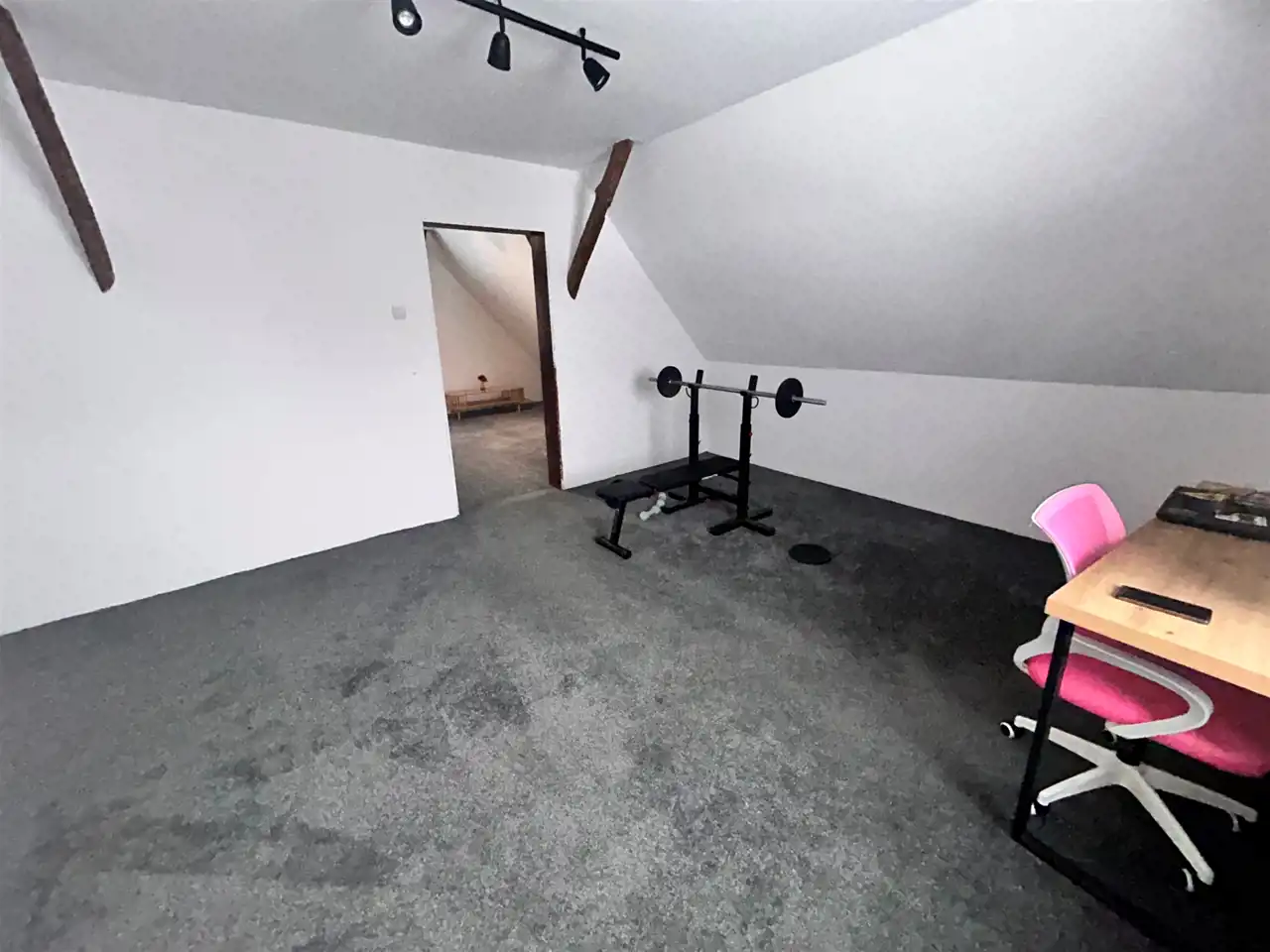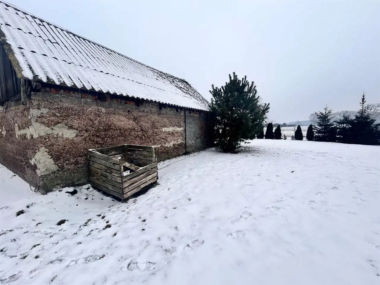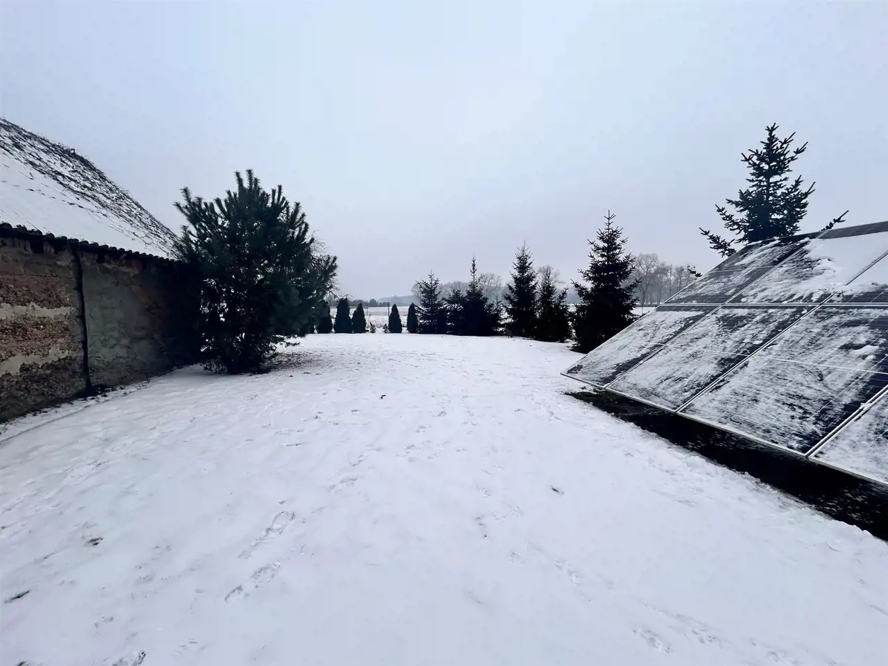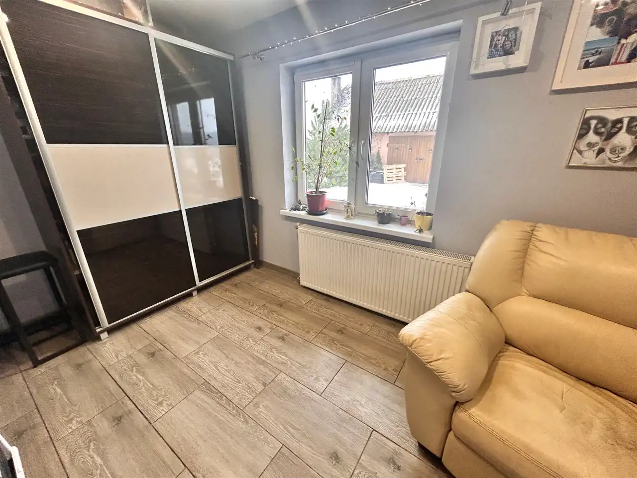 Z tyłu działki znajduje się murowany budynek gospodarczy o pow. 48 m2, dach pokryty eternitem. W tym budynku znajduje się pomieszczenie, w którym zamontowany jest piec.