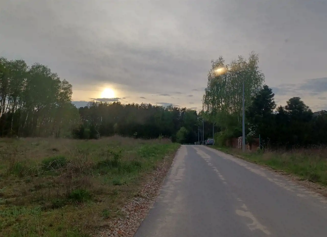 Działka narożna przy drodze asfaltowej, pięknie położona.