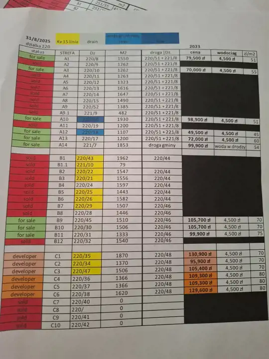 Na sprzedaż działki o różnej wielkości od 1200 m2 do 1930 m2
