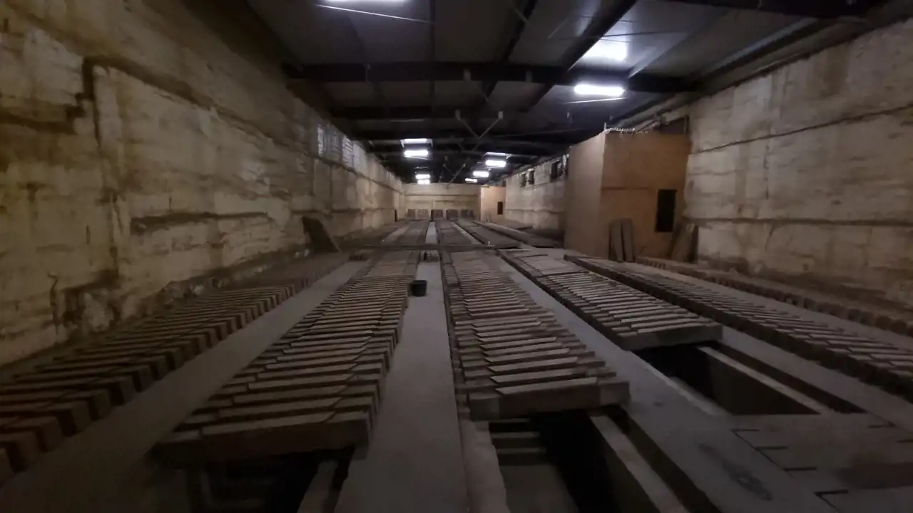 Podłoga betonowa z kanałami wentylacyjnymi, podłoga ażurowa wykonana z drewna.