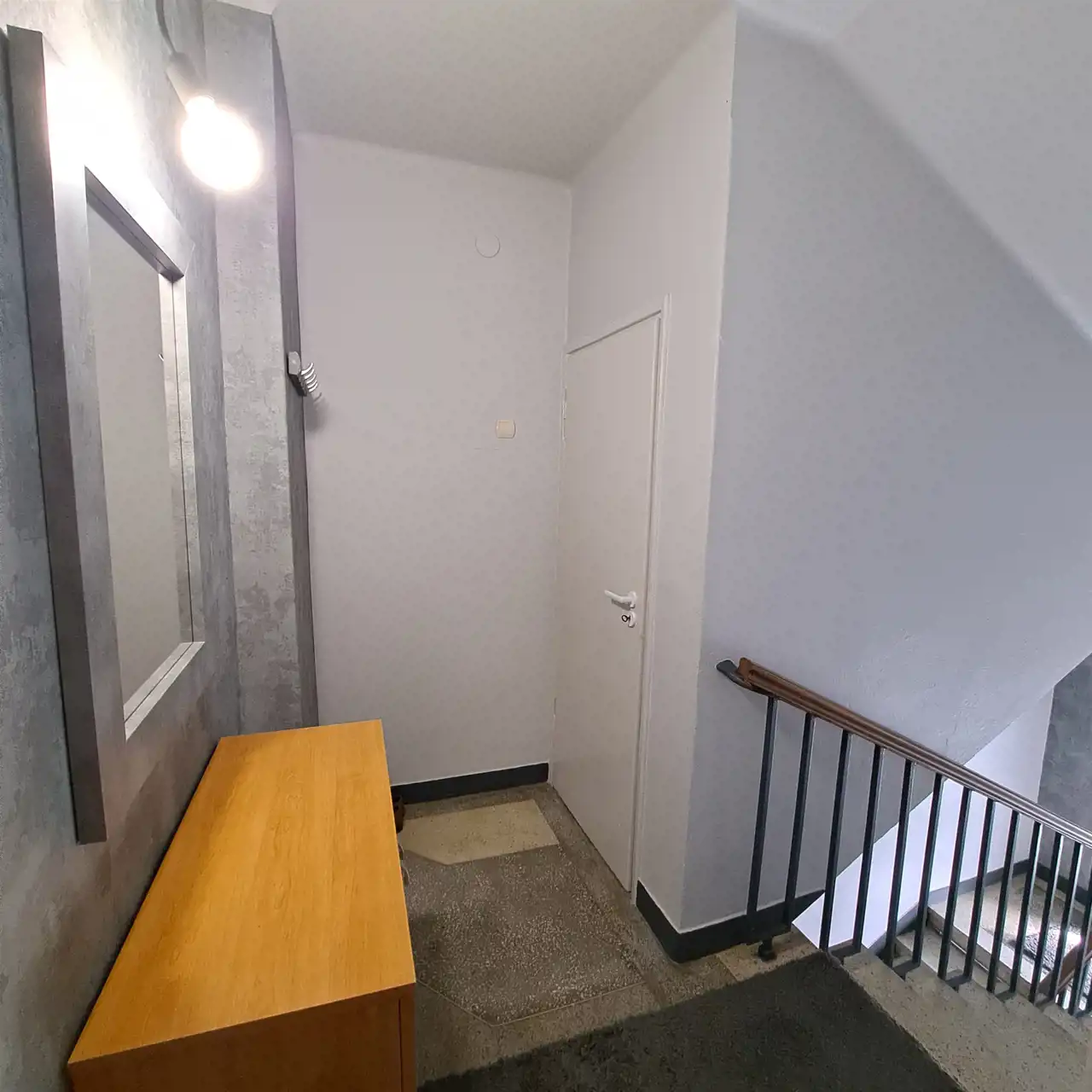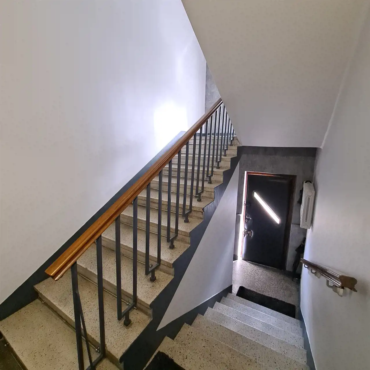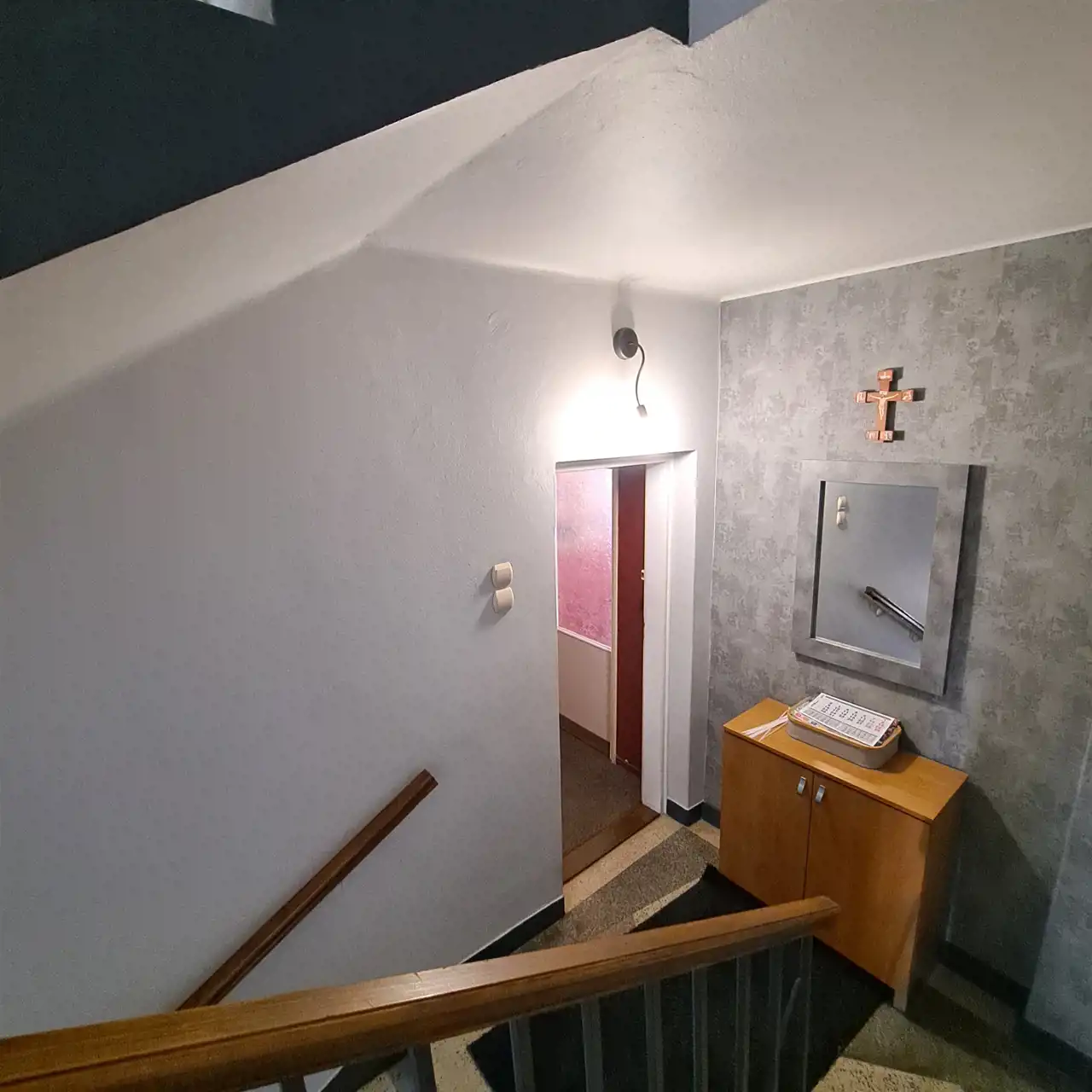 - Na podłogach: parter-płytki, lastriko, piętro-płytki, wylewka cementowa pokryta wykładziną,