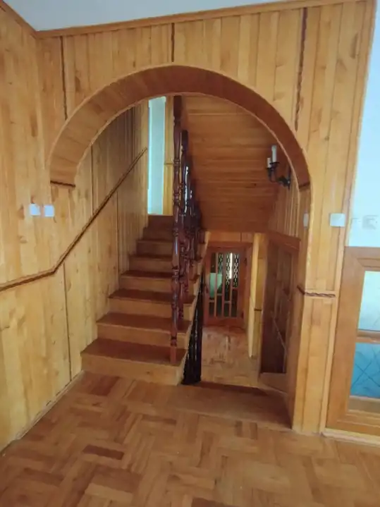 Budynek mieszkalny, murowany, wybudowany w 1985r., bez podpiwniczenia. Dach kryty blachą. Materiał budowlany pustak MAX i pustak pianowy. Około 10 lat temu budynek ocieplono styropianem 10cm, wykonano elewację oraz wymieniono stolarkę okienną (PCV). Około 3 lata temu zamontowano na balkonach nowe balustrady. Drzwi drewniane oraz z płyty. Na podłogach parkiet, deski i płytki. Schody drewniane. Pięć dużych balkonów.