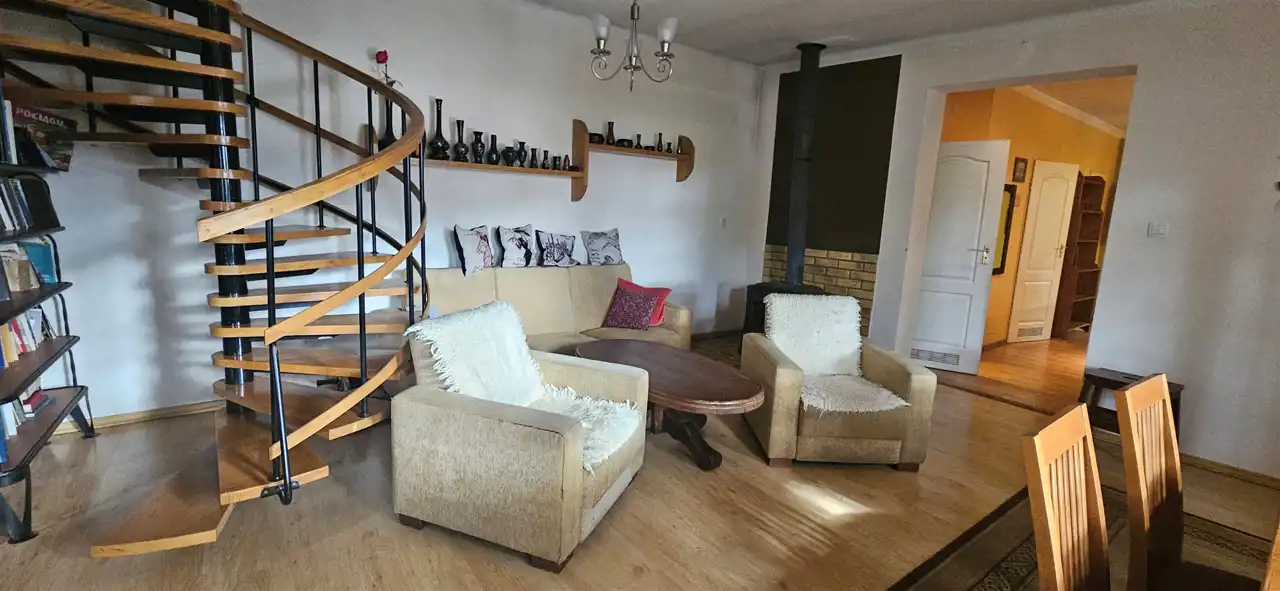 - Budynek mieszkalny o powierzchni użytkowej 78,27 m², z poddaszem (strychem) umożliwiającym adaptację na cele mieszkalne lub użytkowe.