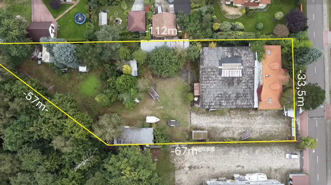 - Działka o powierzchni 2986 m² ogrodzona oraz częściowo zagospodarowana (ogrodzenie od frontu drewniane na podmurówce, brama wjazdowa blaszana, , pozostała część działki ogrodzona siatką na podmurówce).