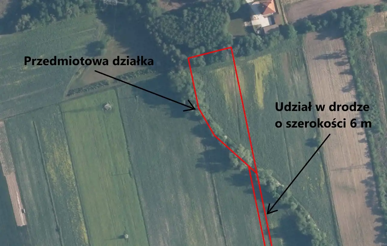- Dojazd do nieruchomości odbywa się drogą asfaltową gminną, przy czym ostatnie ok. 160 m drogą wewnętrzną o szerokości ok. 6 m - udział w drodze.