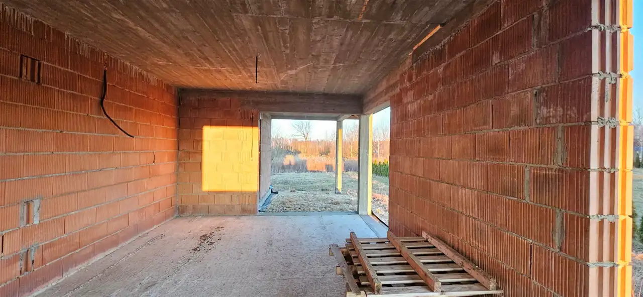 - W budynku wykonano wyloty pod rekuperację oraz wyprowadzono przewody elektryczne ze strychu do każdego pokoju.