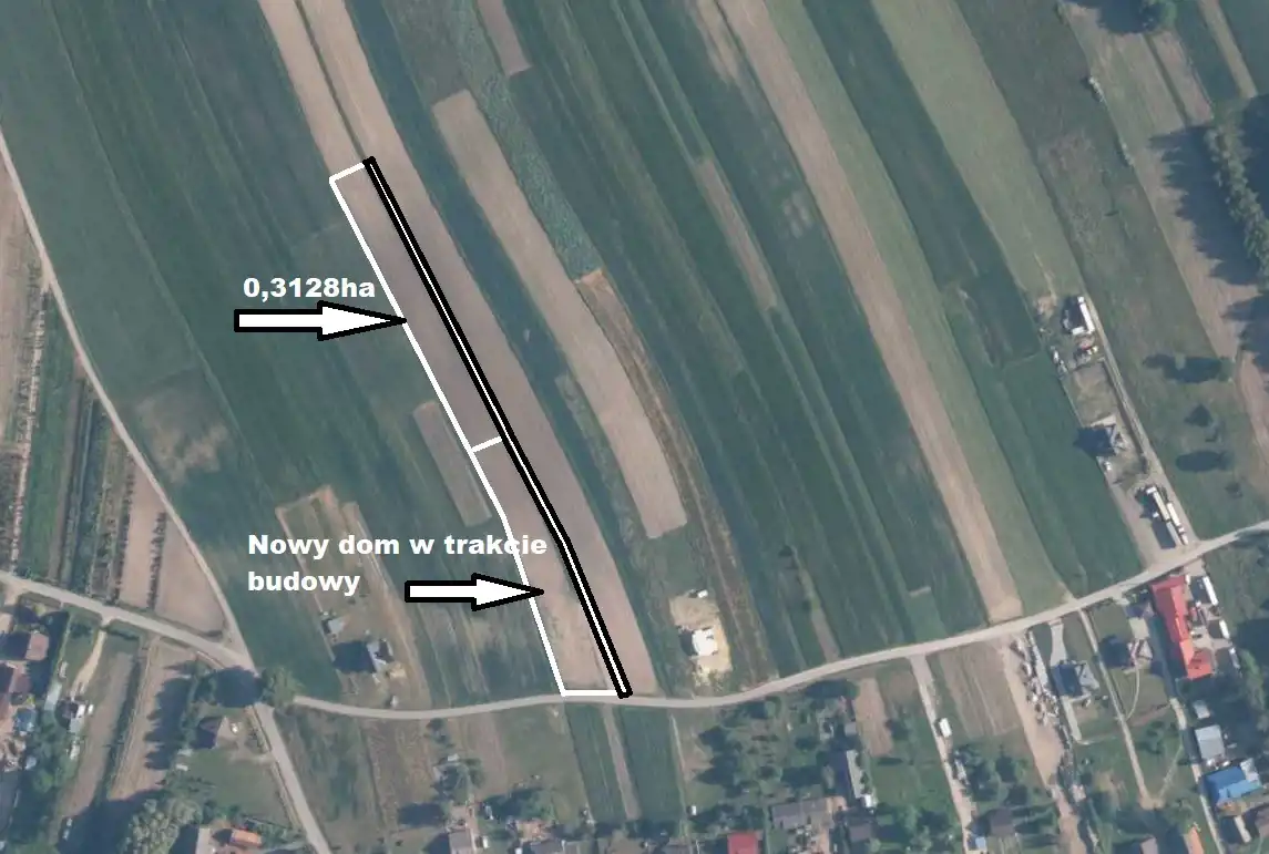 - Działka w drugim pasie zabudowy. Na pierwszej działce trwa budowa nowego domu.