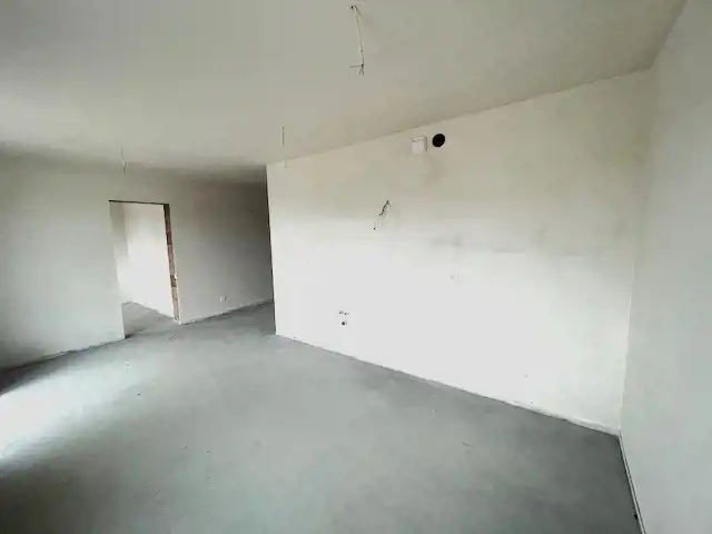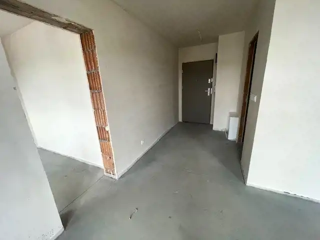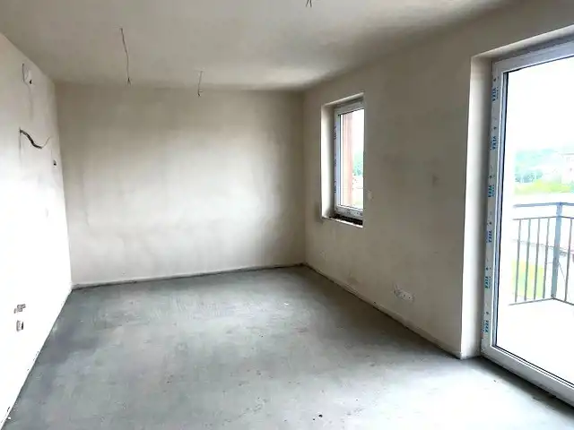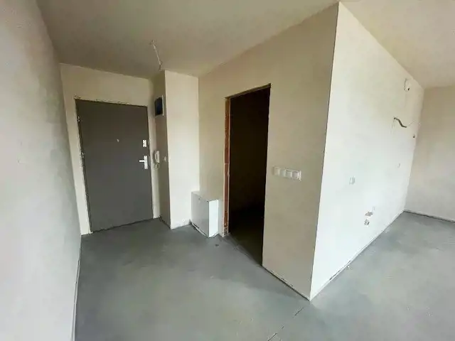- Na podłogach wylewki, na ścianach tynki, okna PCV oraz stolarka drzwiowa zewnętrzna.