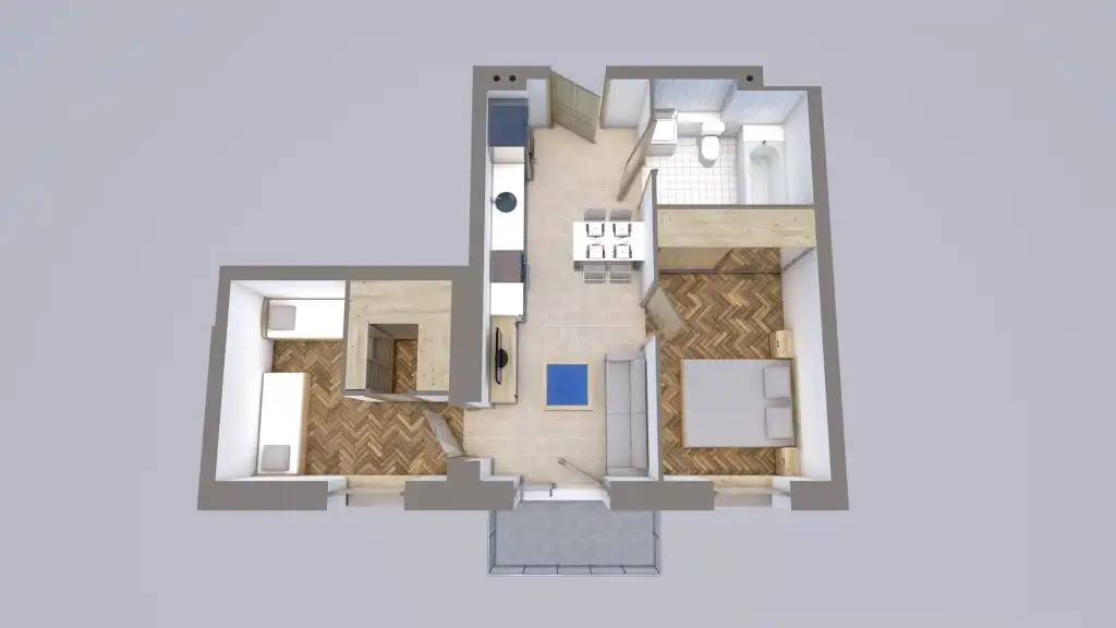 - Charakterystyka mieszkania 46.57 m2, 3 pokoje