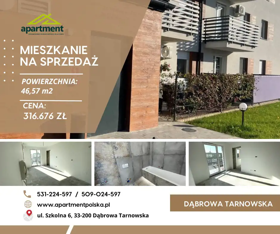 - Zapraszamy do zapoznania się z ofertą przestronnego i funkcjonalnego 3-pokojowego mieszkania, usytuowanego w Dąbrowie Tarnowskiej, o pow. użytkowej 46,57 m2.