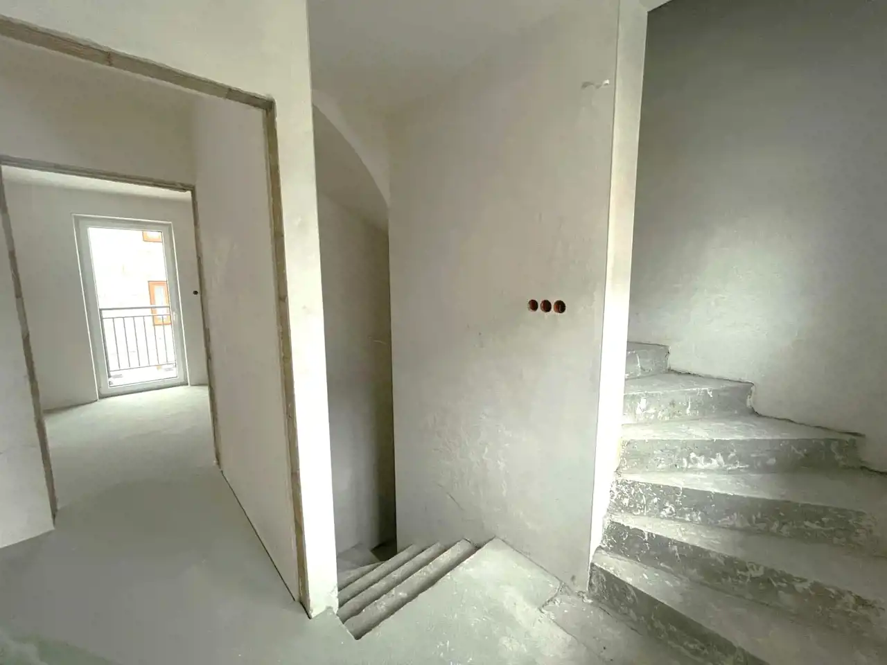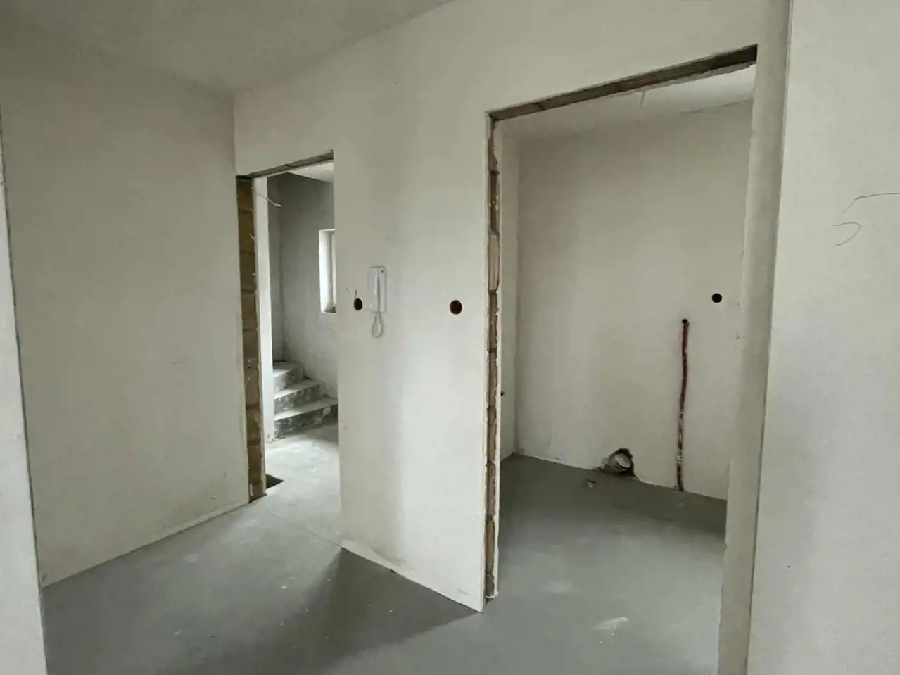 Na pierwszym poziomie w stanie deweloperskim znajduje się pokój dzienny, kuchnia, sypialnia, łazienka, hol i klatka schodowa.