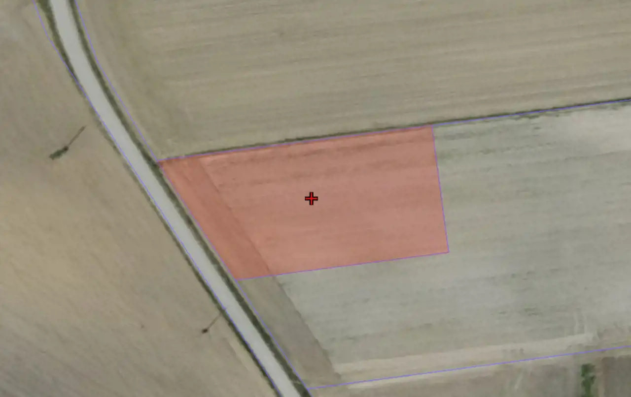 - Otoczenie: działka tkwi w środowisku wiejskim, w otoczeniu pól, nieco rozproszonej zabudowy rolnej i siedlisk.