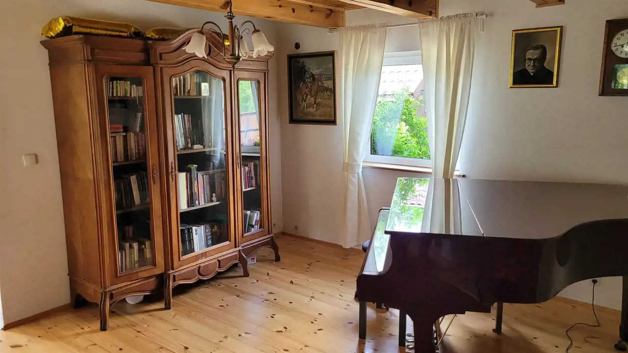 Dobudowana część (studio muzyczne) – obecnie w stanie do wykończenia, z niezależnym wejściem z zewnątrz