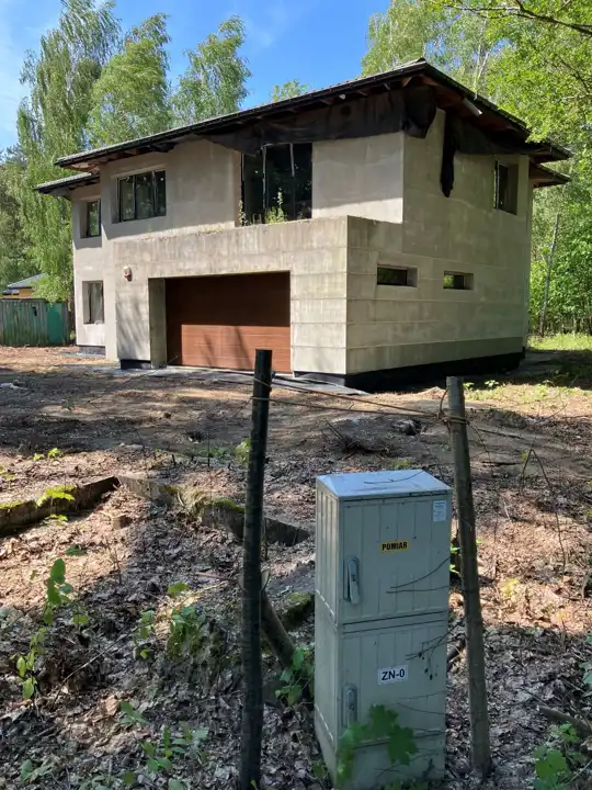 Budynek znajduje się w stanie surowym zamkniętym, bez instalacji, wylewek czy tynków wewnętrznych, a elewacja zewnętrzna wymaga odświeżenia.