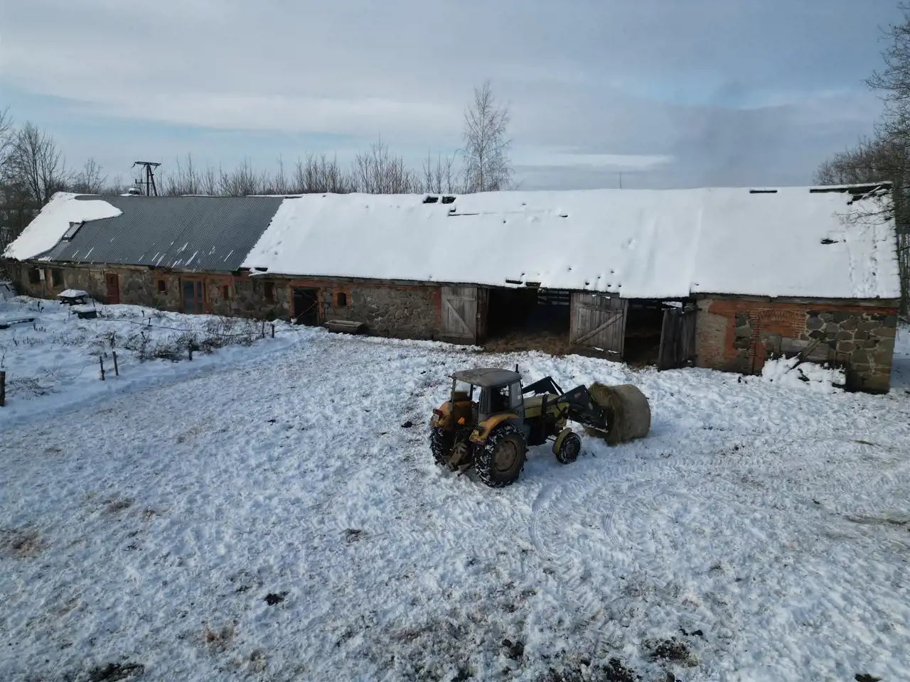 Sercem gospodarstwa jest budynek mieszkalno-gospodarczy o powierzchni zabudowy aż 325 m². Obiekt wymaga generalnego remontu lub odtworzenia, co daje Ci czystą kartę do realizacji własnej wizji architektonicznej.