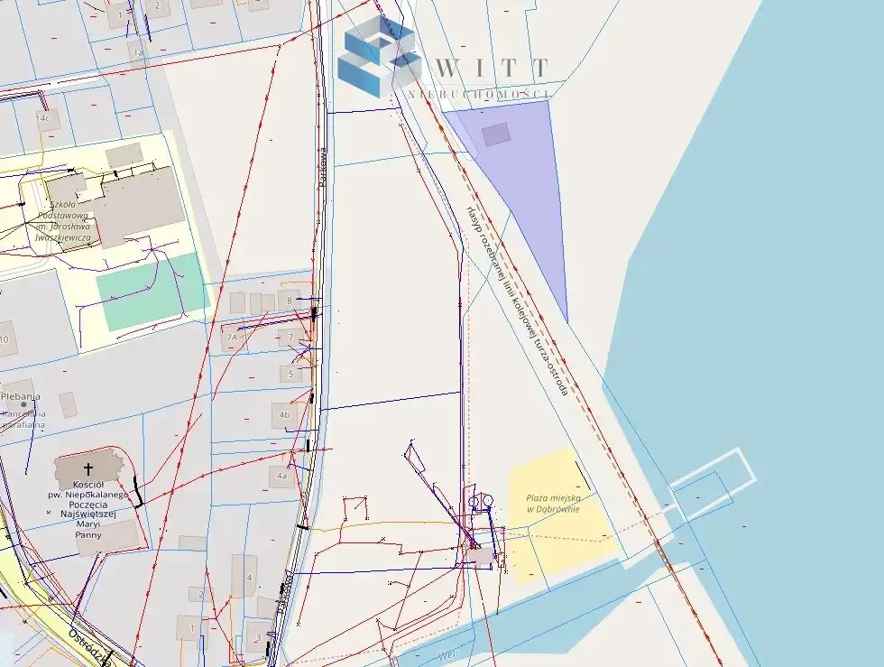 Działka jest wyjątkowo usytuowana – zaledwie 90 metrów od pierwszych dwóch plaż, do których można dotrzeć dwoma drogami. W sąsiedztwie znajduje się wejście do pięknego parku, który stanowi zielone serce miejscowości. Co istotne, dzieli go od działki tylko stary nasyp kolejowy. W parku do dyspozycji mieszkańców są miejsca wypoczynkowe, ławki, plac zabaw, boisko do koszykówki oraz piłki nożnej, a także rzeka, która łączy się z jeziorem Dąbrowa Mała, co dodaje temu miejscu wyjątkowego uroku. To idealne miejsce na relaks, spotkania z rodziną i przyjaciółmi czy aktywne spędzanie czasu na świeżym powietrzu. Dodatkowym atutem jest znajdujący się w miejscowości orlik oraz pełnowymiarowe boisko piłkarskie, na którym regularnie odbywają się mecze ligowe, co zapewnia dodatkowe możliwości sportowej rekreacji i rozrywki.