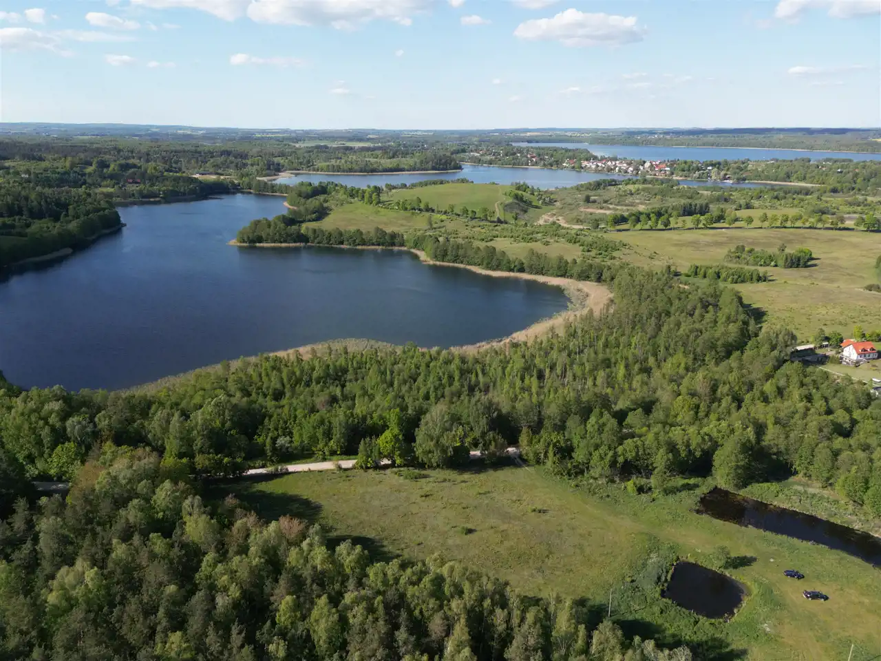 To nie wizja. To Wądzyn. Między trzema jeziorami: Dąbrowa Mała, Dąbrowa Duża i Okrągłe, oferujemy na sprzedaż 6 pięknych działek budowlanych z dużym potencjałem.