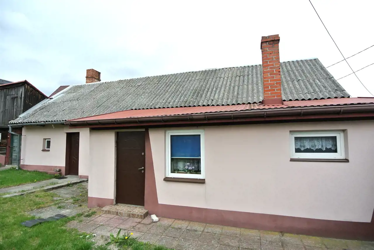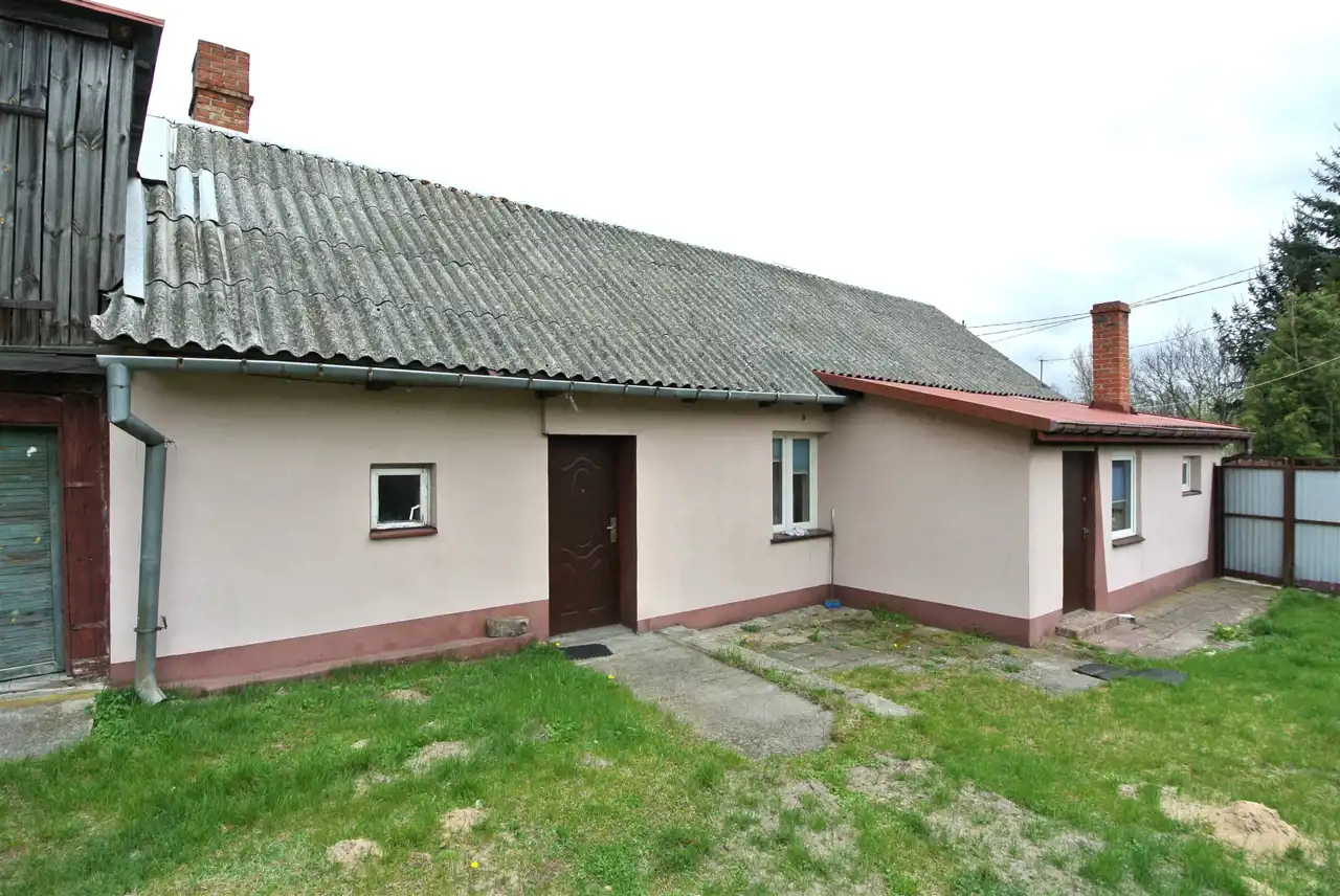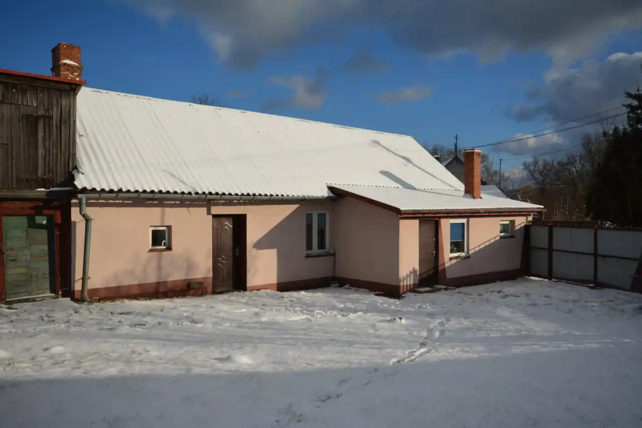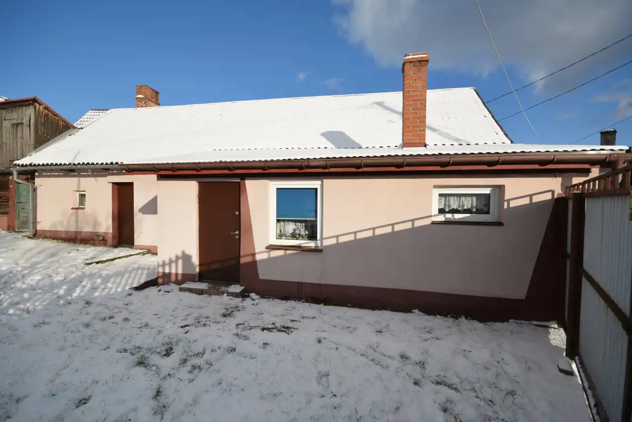 Budynek wybudowany z drewna, ocieplony styropianem, pokrycie dachu eternit, ogrzewanie piecem na ekogroszek.
