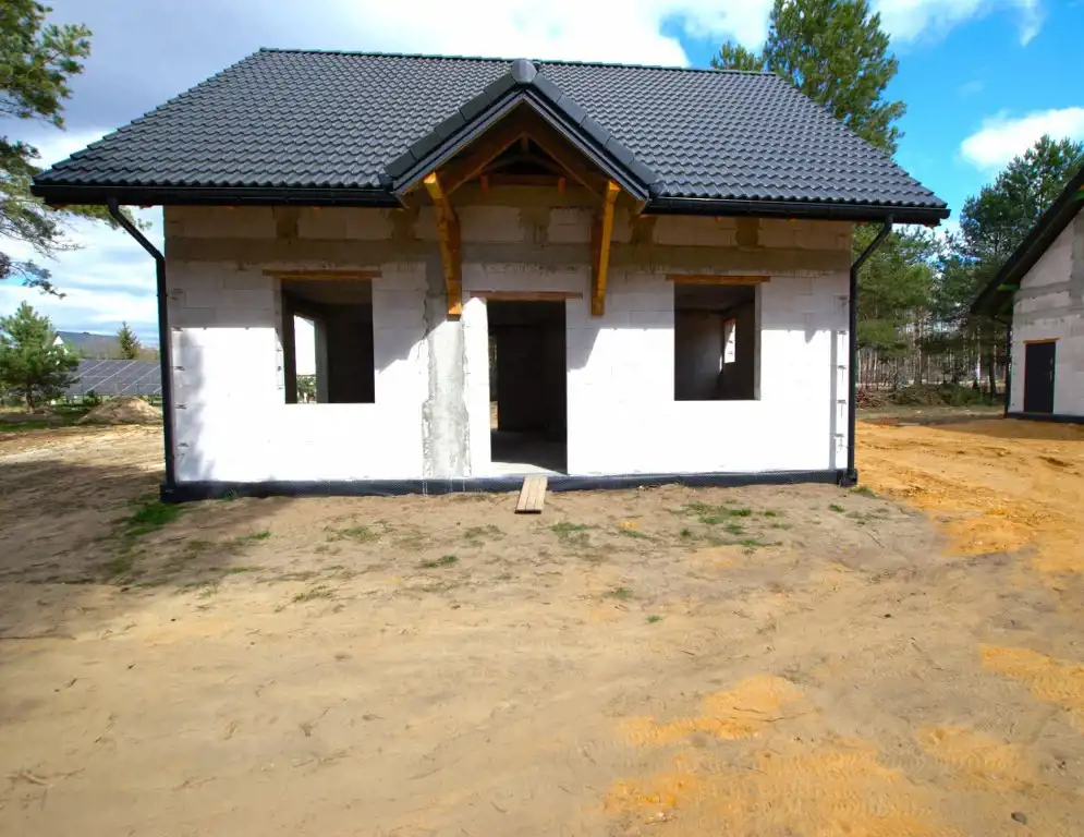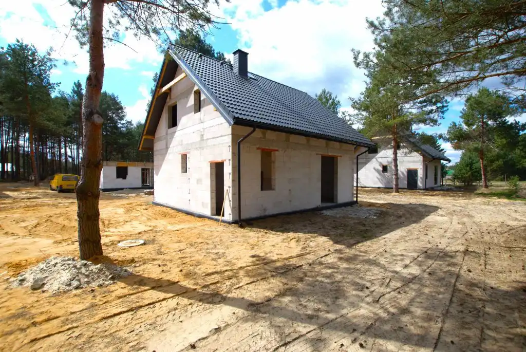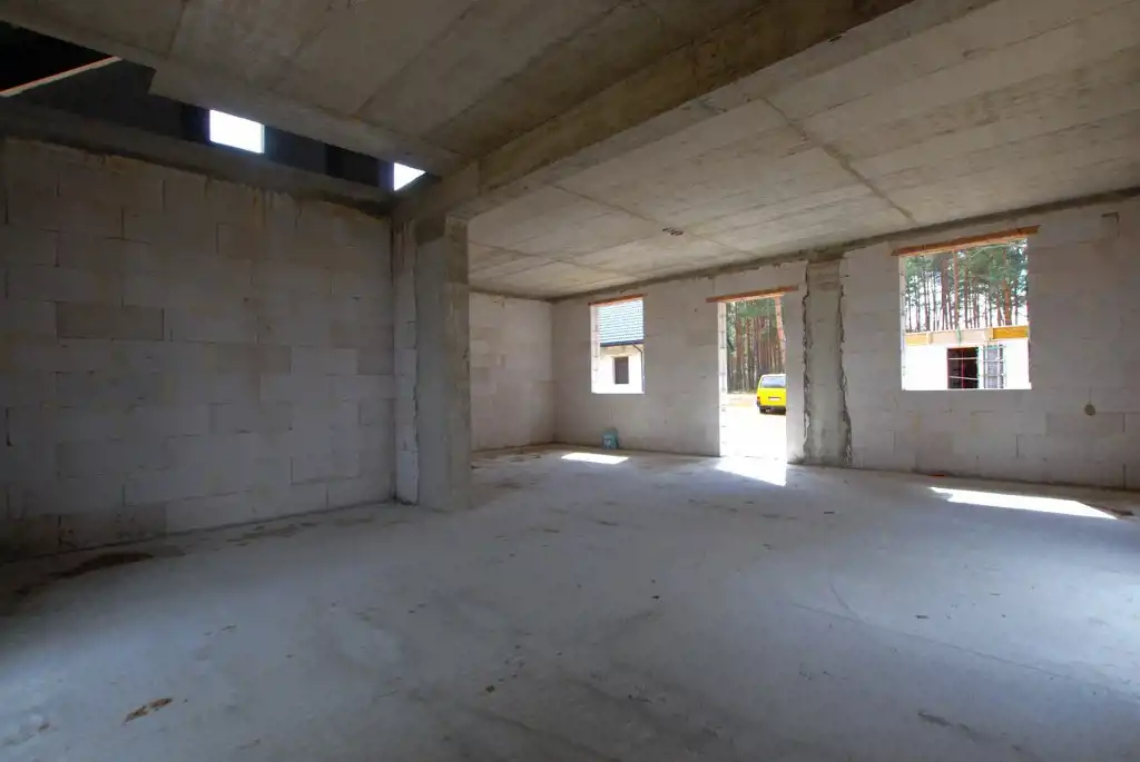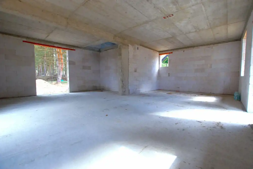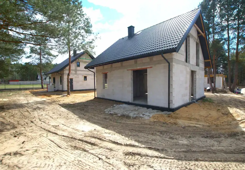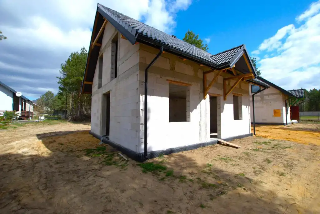 Dom wybudowany z bloczków betonowych oraz gazobetonowych. Dach pokryty dachówką betonową firmy BRAAS, więźba dachowa drewniana, strop żelbetowy. Możliwość ogrzewania domu pompą ciepła, kotłem na ekogroszek, pellet lub drewno. Dom sprzedawany w stanie surowym zamkniętym - bez stolarki drzwiowej, okiennej oraz ścian działowych. Do domu doprowadzona instalacja wodna oraz kanalizacyjna. Na działce znajduje się szambo o pojemności 8 m3.