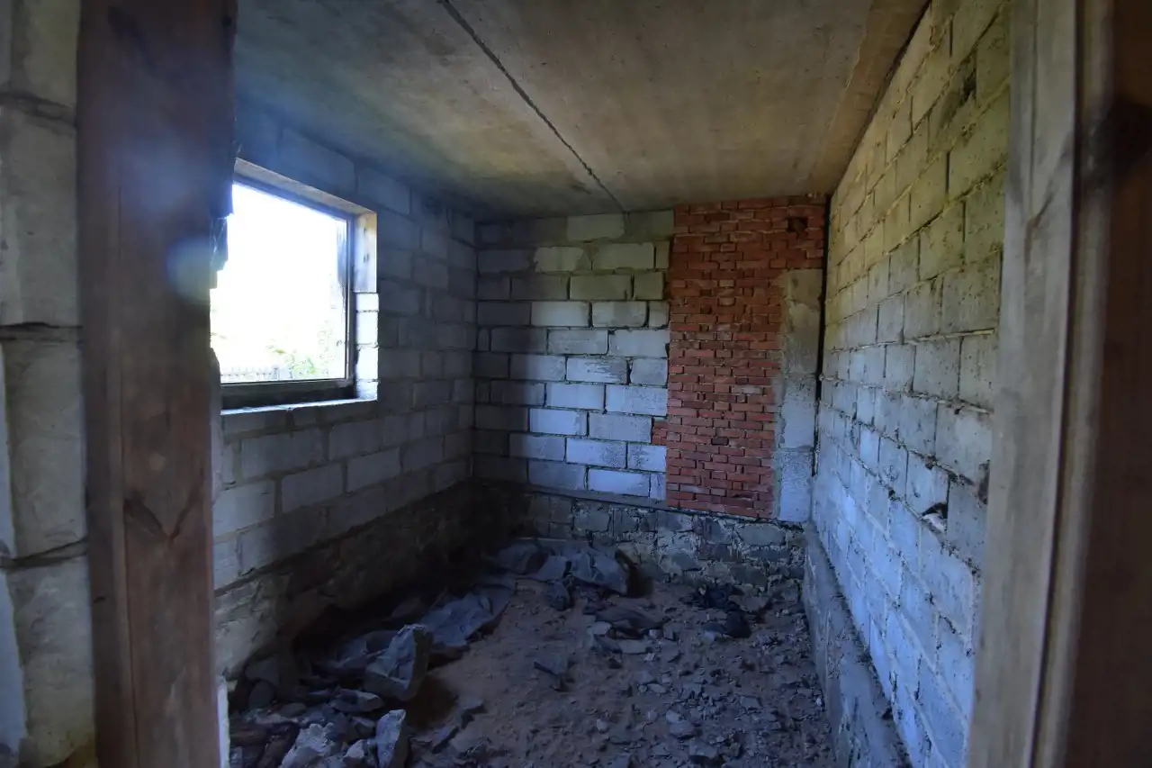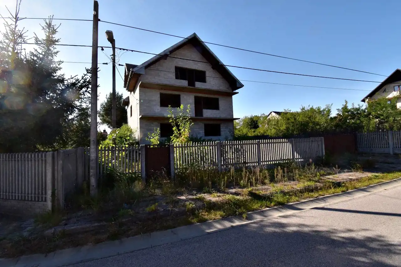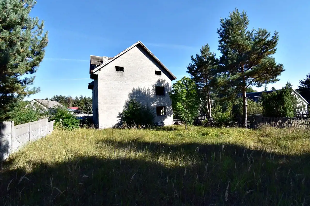For sale: A brick, detached house with an attic in an open-shell condition (construction started in the 2000s). The house has a usable area of 108.5 m² and a total area of approx. 272.4 m². It is located in Słopiec Rządowy, Daleszyce municipality, on a 4,300 m² plot, situated directly along an asphalt access road.