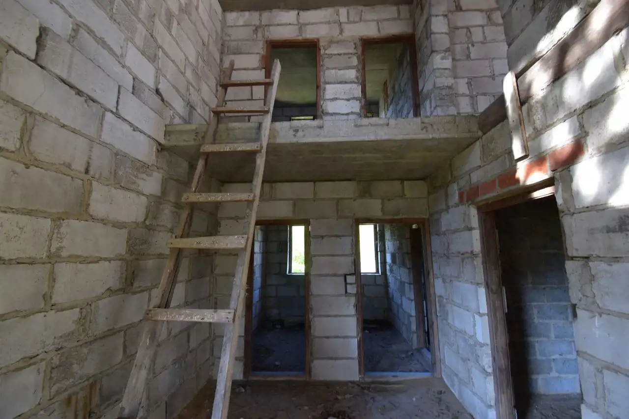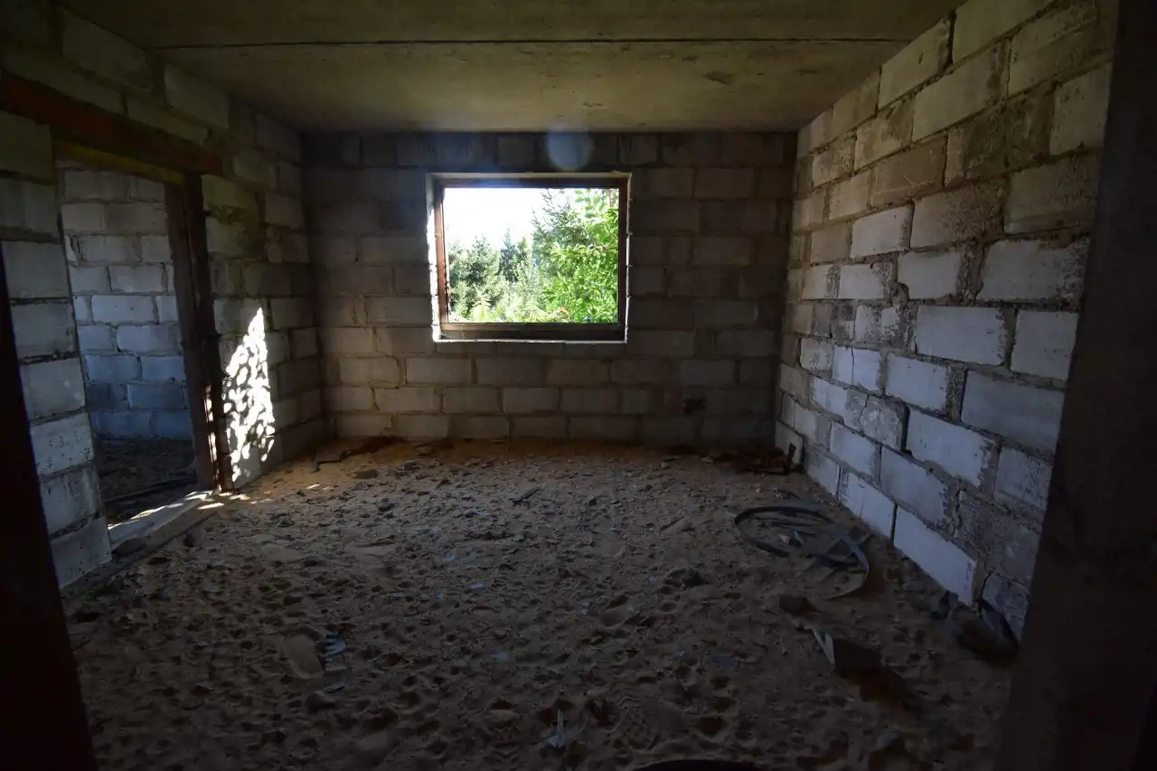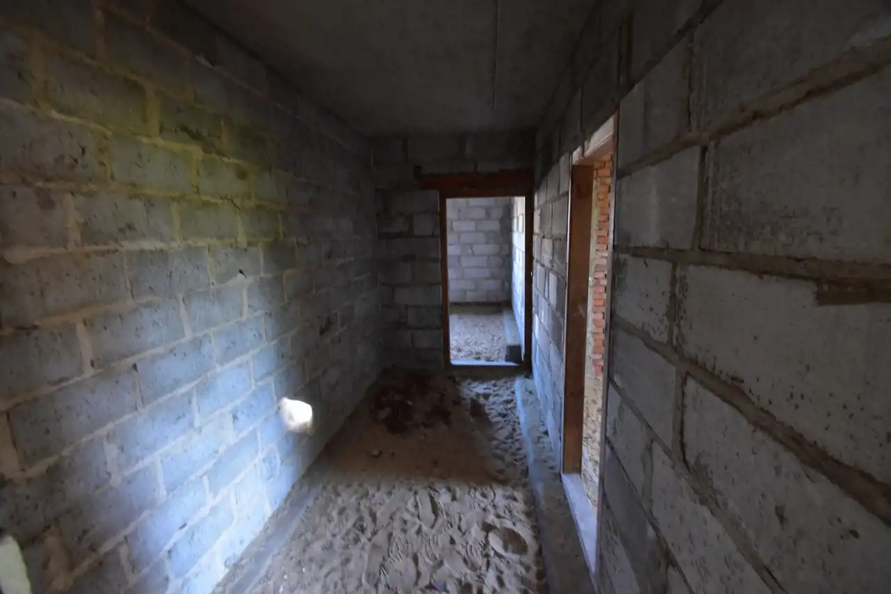 For sale: A brick, detached house with an attic in an open-shell condition (construction started in the 2000s). The house has a usable area of 108.5 m² and a total area of approx. 272.4 m². It is located in Słopiec Rządowy, Daleszyce municipality, on a 4,300 m² plot, situated directly along an asphalt access road.