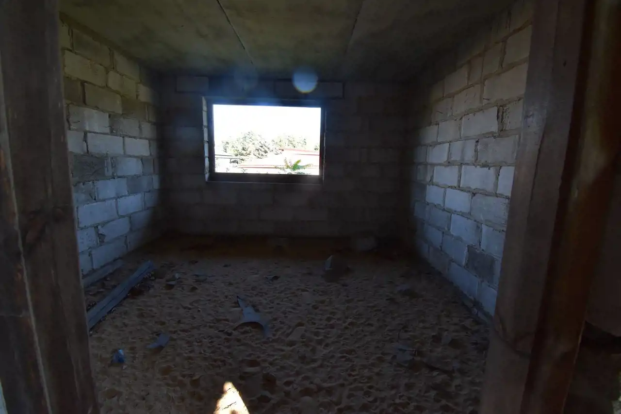 The building is not insulated, has no windows, and the attic is not insulated. The roof is covered with asbestos sheets.