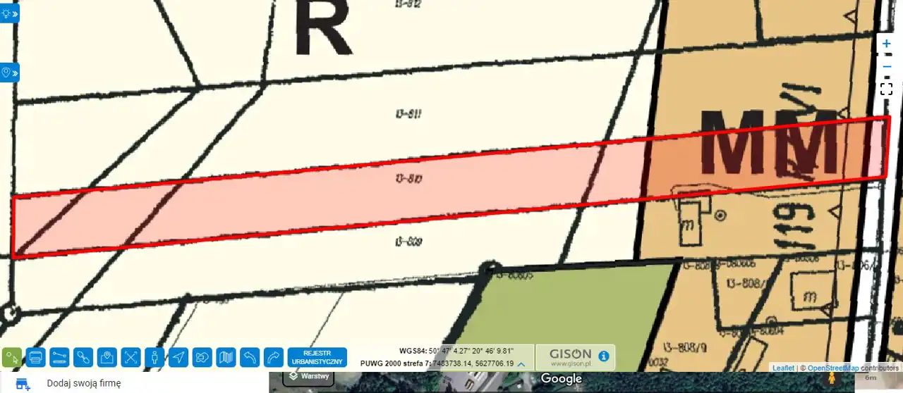 Działka objęta jest Miejscowym Planem Zagospodarowania Przestrzennego: oznaczona symbolem MM - terenu zabudowy mieszkaniowej (pow. ok. 1200 m2) oraz R - tereny rolne.