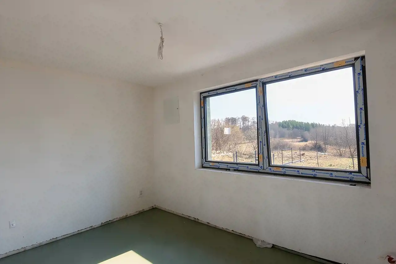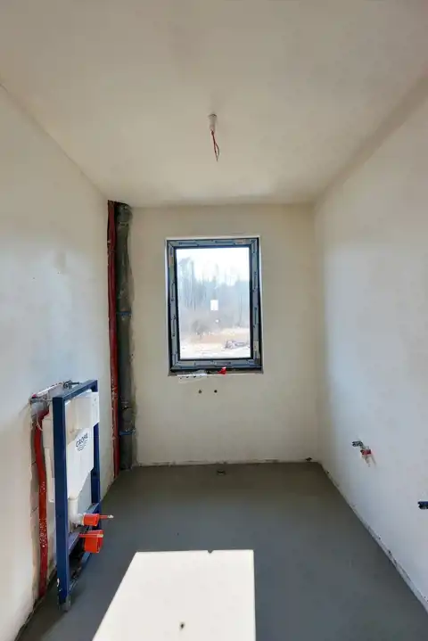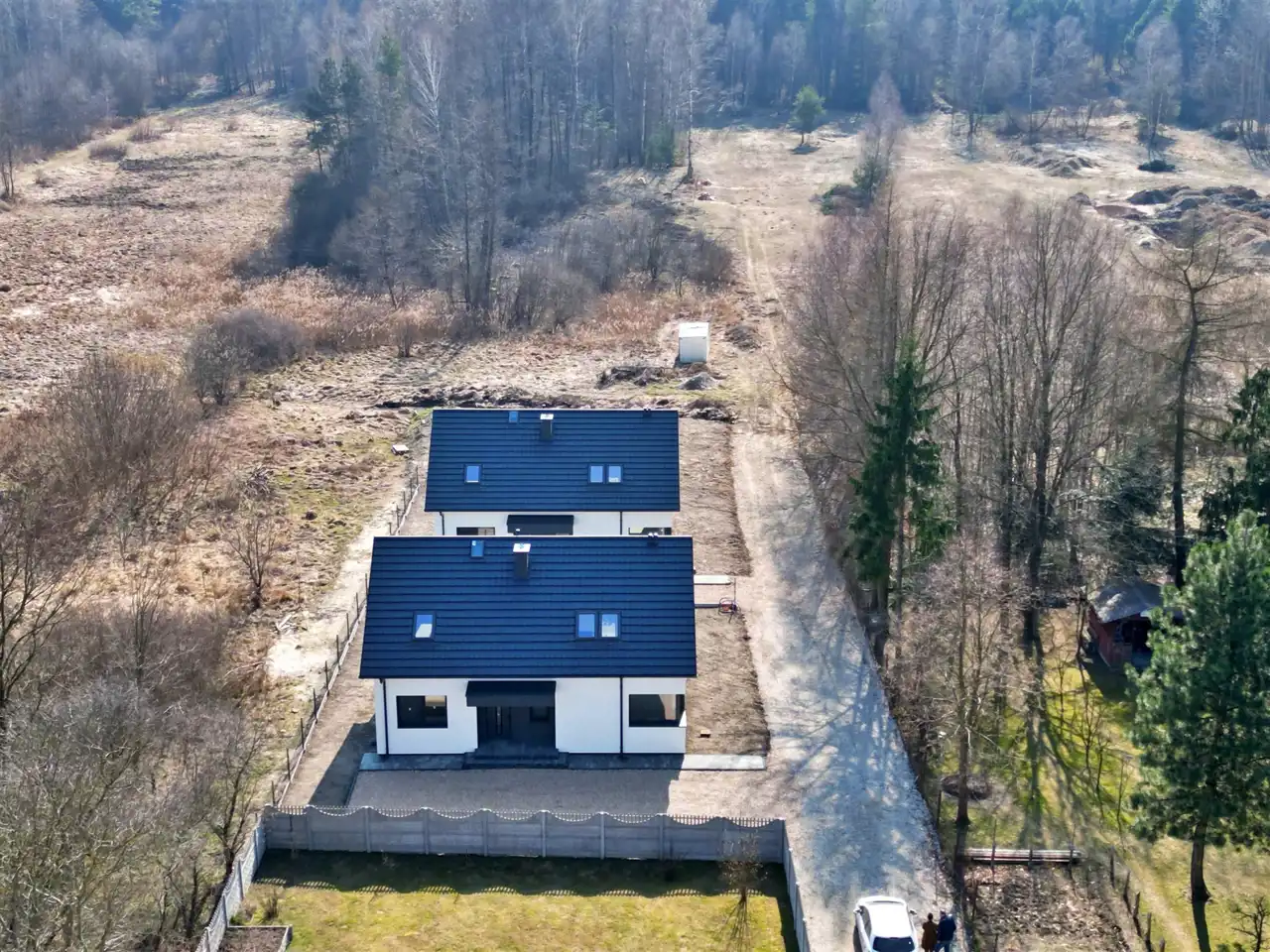 The plot is partially fenced and landscaped – concrete paving stones on the driveway, lawn around the house. The property is located in the second line of development, ensuring peace, privacy, and comfort. In the immediate vicinity there is a forest and single-family housing, creating ideal conditions for those who value tranquillity and proximity to nature.