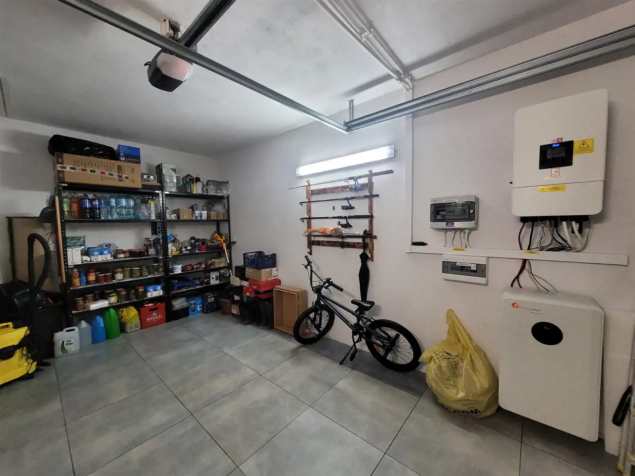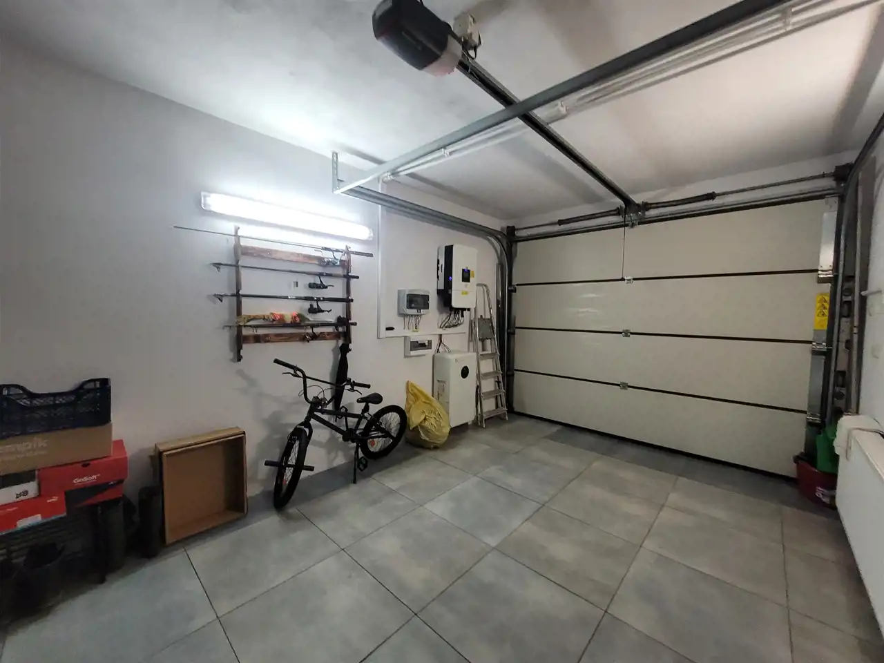Piec elektrodowy dwufunkcyjny, fotowoltaika na dachu, magazyn energii zainstalowany w garażu w raz z falownikiem do paneli. Inteligentny dom, zwroty za prąd.
