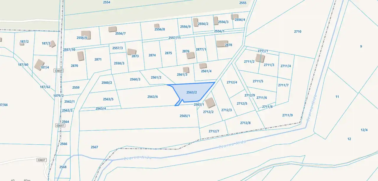 W sąsiedztwie działki również niezabudowane tereny rolne, leśne, staw oraz rzeka. Działka płaska, uzbrojona o długości 66m² i szerokości 36m².