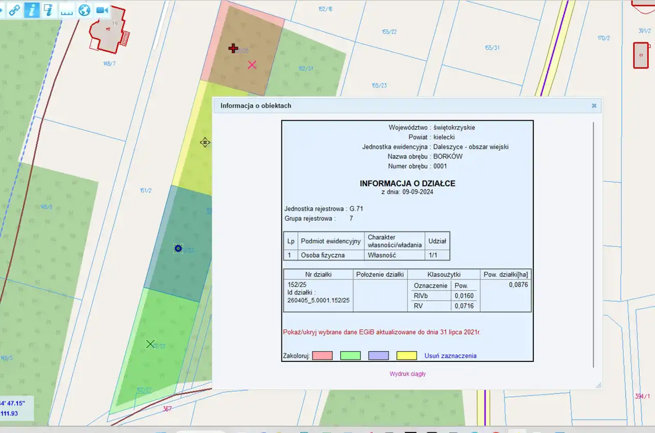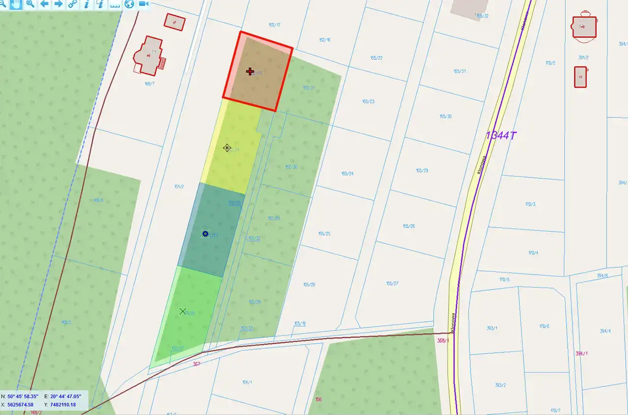 For sale: a 876 m² plot located in the village of Borków, in the Daleszyce municipality. The plot is situated on the edge of a forest, in an area covered by the Local Spatial Development Plan, designated as MN - single-family residential development. The plot is flat and rectangular. Nearby are single-family homes, a forest, and a reservoir. Convenient access – 20 minutes from the center of Kielce (16 km).