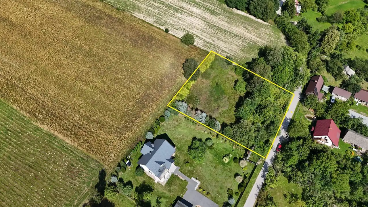 - Działka częściowo zagospodarowana, lekko nachylona, prostokąt