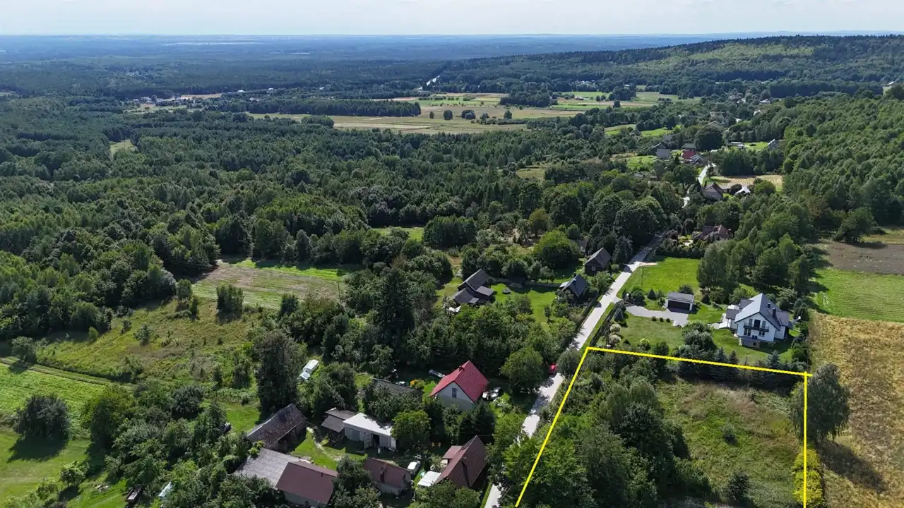 Działka budowlana o wielkości 2100m2 ( wymiary około 50m x 46m) około 25km od Kielc i 6km od Daleszyc. Miejsce jest ciche przytulne i pełne zieleni, działka widokowa. Dobra komunikacja z miastem oraz odległość do Kielc powoduje, że codzienne dojazdy do pracy czy szkoły to czysta przyjemność. Działka jest w pełni ogrodzona płotem. Działka wyposażona w: