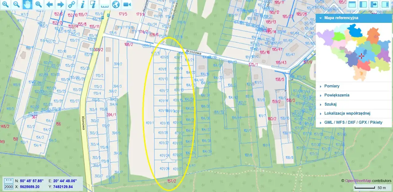 Na sprzedaż kompleks 22 działek budowlanych o łącznej powierzchni 23170 m2 zlokalizowany w miejscowości Borków (gm. Daleszyce) przy ul. Brzozowej. Działki w całości ujęta miejscowym planem zagospodarowania przestrzennego oznaczone symbolem MN45 - teren zabudowy mieszkaniowej jednorodzinnej. Dojazd drogą gminną asfaltową. Wyznaczona droga wewnętrzna o szerokości 6 m. Działki po bokach drogi o powierzchni około 900 m2 każda, działki na końcu o powierzchni około 1500 m2. Dostępne media to: prąd, woda, kanalizacja w przylegającej ulicy Brzozowej.