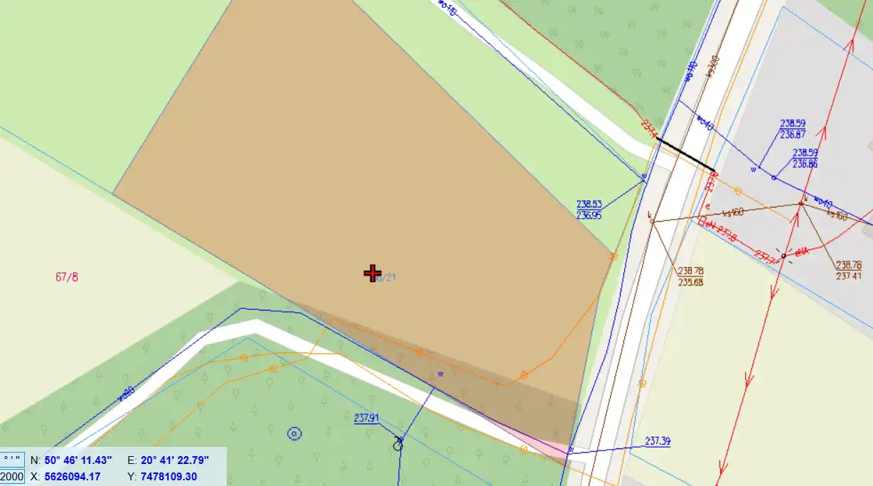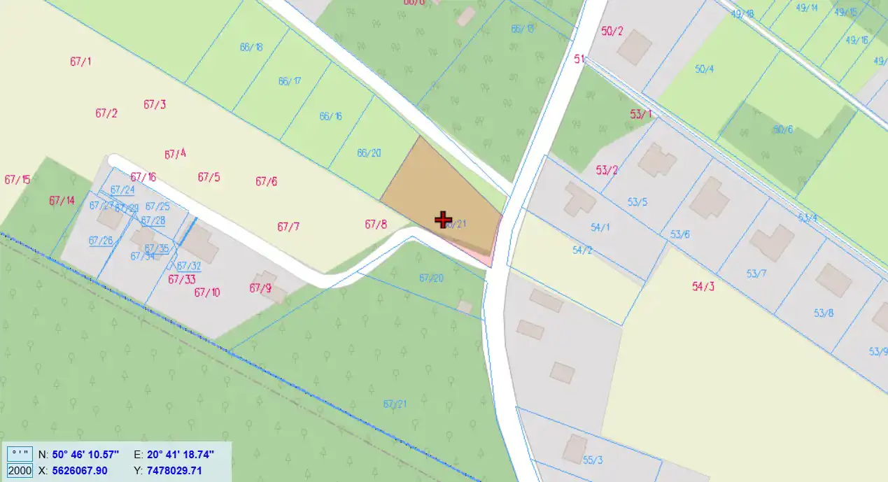 The plot is covered by the Local Spatial Development Plan, designated as MN – single-family housing and partially as KDW1 (for road widening).