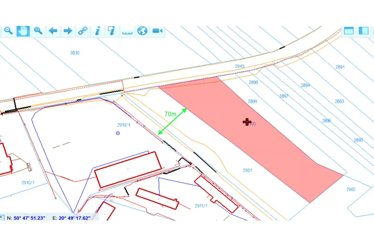 - Media Woda: powyżej 100m; Kanalizacja: brak; Prąd: na sąsiedniej działce; Gaz: brak