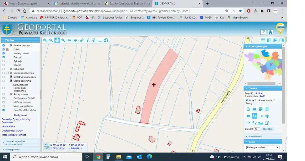 Przybliżone wymiary działki: 18 m (front) x 190 m x 26 m x 175 m.