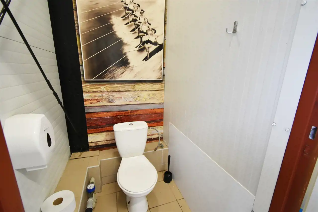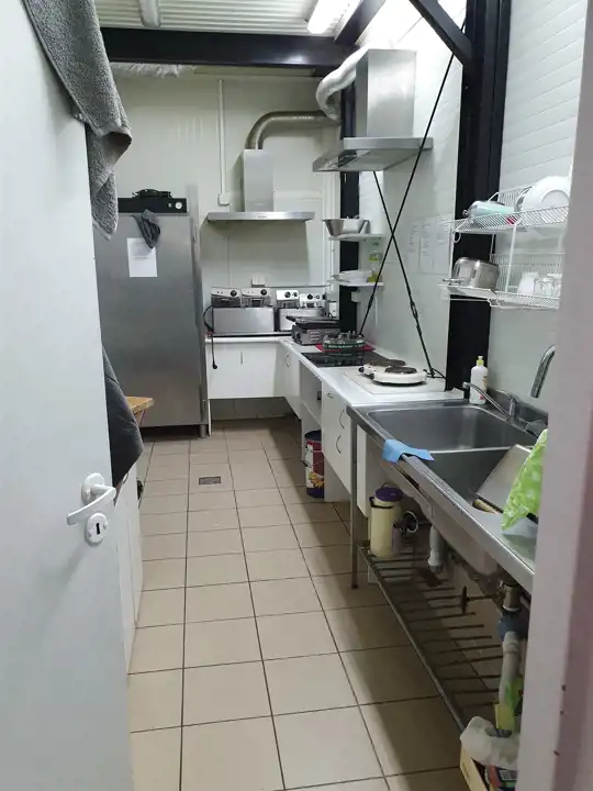 - a bar approximately 100 m2 in size, with a fully equipped kitchenette, wooden tables and benches, freezers, industrial refrigerators, microwaves, bain-maries, fryers, and warmers;