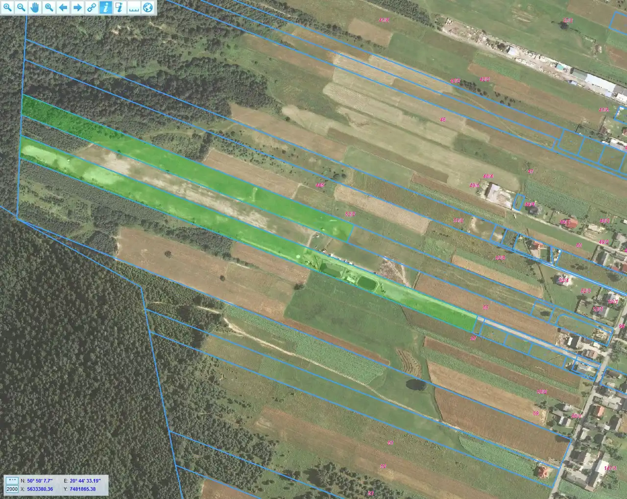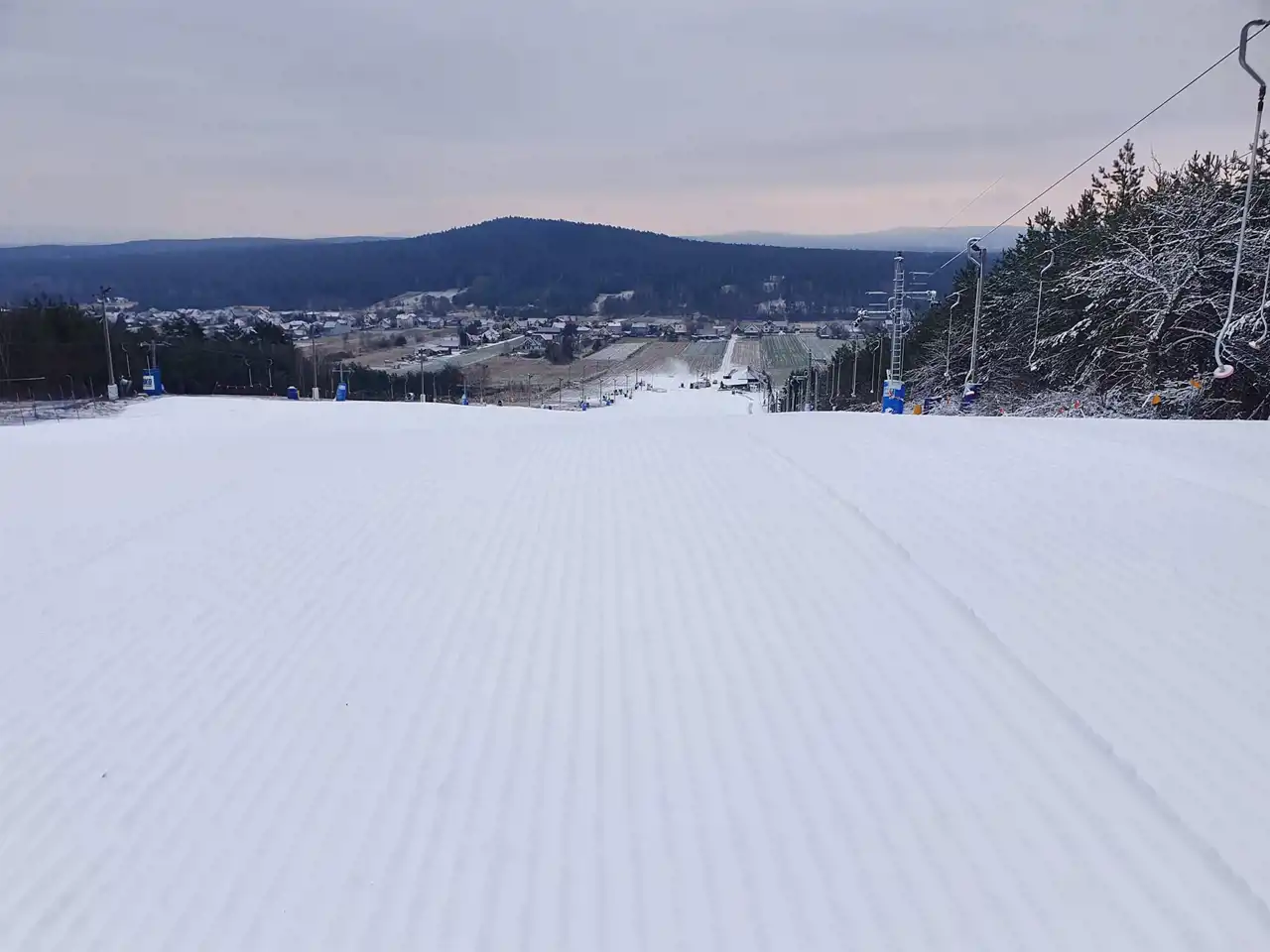 - with an area of 15,762 m2, in the shape of a rectangle, with dimensions of approximately 28 m x 562 m, covered by the Local Spatial Development Plan R2 - primary use: agricultural areas, allowable use: sports and recreation services in the winter season, associated with the nearby ski slope, networks and equipment of technical infrastructure and linear transport, afforestation, tourist trails, and bike paths. The plot is equipped with electricity, lighting, monitoring.