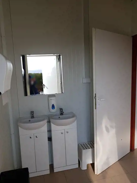 - 3 outdoor toilets (female, male, and disabled).