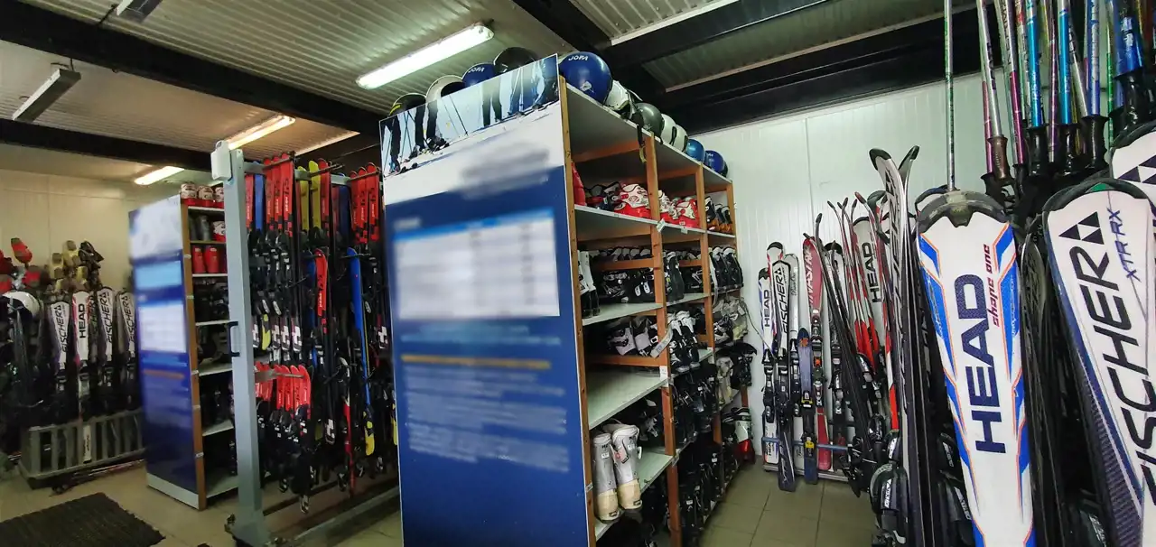 - approximately 100 m2 space, currently used as a sports equipment rental (approximately 300 pairs of skis and ski boots, approximately 100 pairs of snowboards and snowboard boots, approximately 200 helmets and ski poles, 2 boot dryers, Firesnow rental system - 3 stations, storage, room, and toilet for staff);