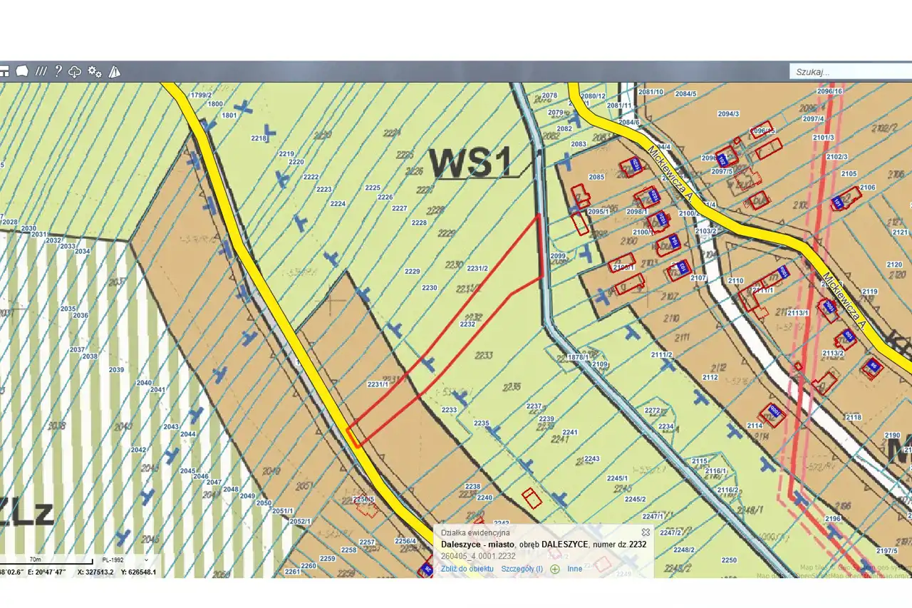 The area where the plot is located is covered by a Local Spatial Development Plan - designation: MN5 - area for single-family housing, and in the Z fragment - floodplain green areas. New single-family homes are located in the vicinity.
